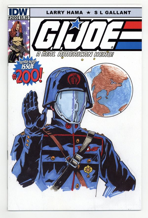 Tags: G.I. JoePublished Mar 2014 by IDW Publishing.$22.00(W) Larry Hama (A) S. L. Gallant (CA) Herb Trimpe This is it: the landmark 200th issue in this long-running series! G.I. JOE returns to the Pit, but things are not as they expected at their homebase. HAWK and DUKE prepare to take the team into a new era, as COBRA's plans and new threats require a fresh approach. Join the adventure in G.I. Joe: A Real American Hero #200 and prepare for the next 200! Cover price $5.99.