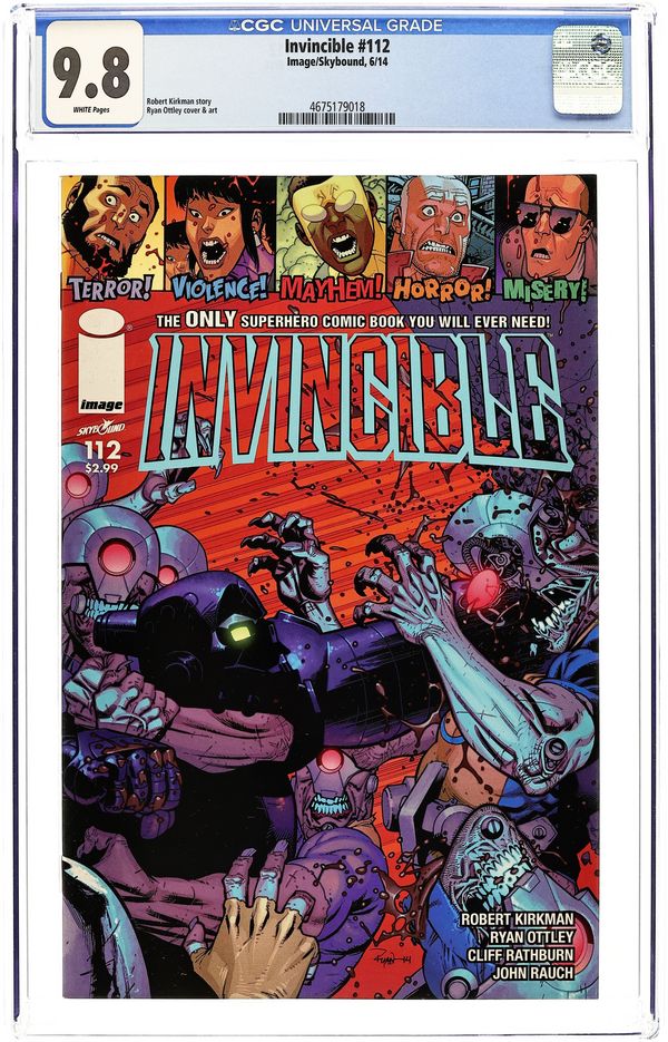 Written by Robert Kirkman. Art and Cover by Ryan Ottley and John Rauch. Robot continues his quest to take over the world, traveling down a blood-drenched path littered with fallen friends. 28 pages, full color. Cover price $2.99.