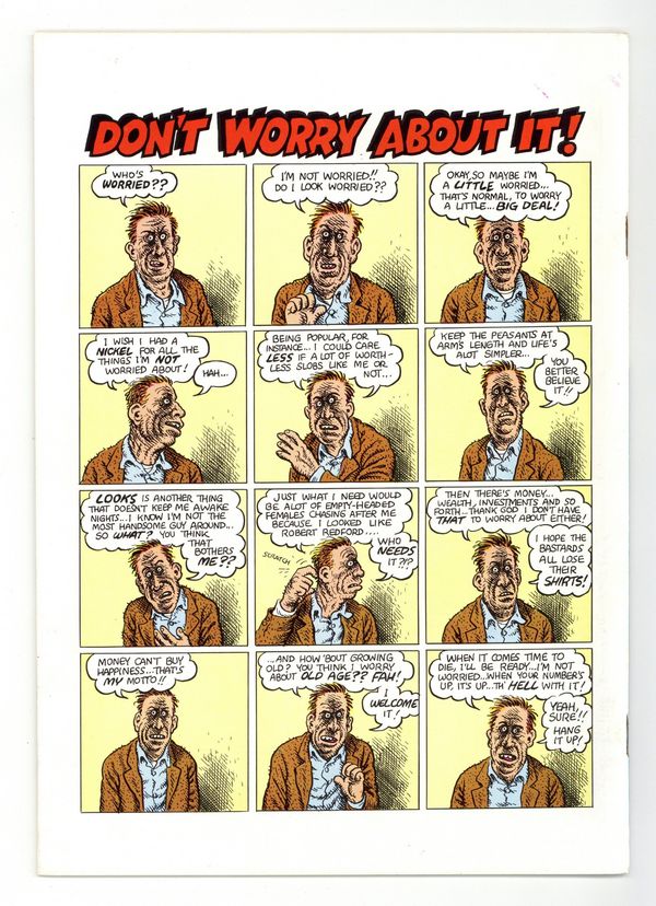 1st Printing. Cover by Robert Crumb. "The Ruff-Tuff Cream-Puffs Take Charge!," script and art by Robert Crumb; The Ruff-Tuff Cream-Puffs, who are sick of liberal wimps, take over the U.S.A. "Uh Oh! He's Back! Who's Back? You'll Find Out!," script and art by Robert Crumb; Mr. Natural literally flies in to meet Flakey Foont for the first time in a decade. "My Troubles With Women - Part II," script and art by Robert Crumb; Crumb goes more in-depth into his psyche with this follow-up story, this time attempting to bring out the root causes of his deviant behavior. "Here He Comes Again!," script and art by Robert Crumb; Mr. Natural visits Flakey again and introduces him to Devil Girl. 36 pgs., B&W. $2.50.