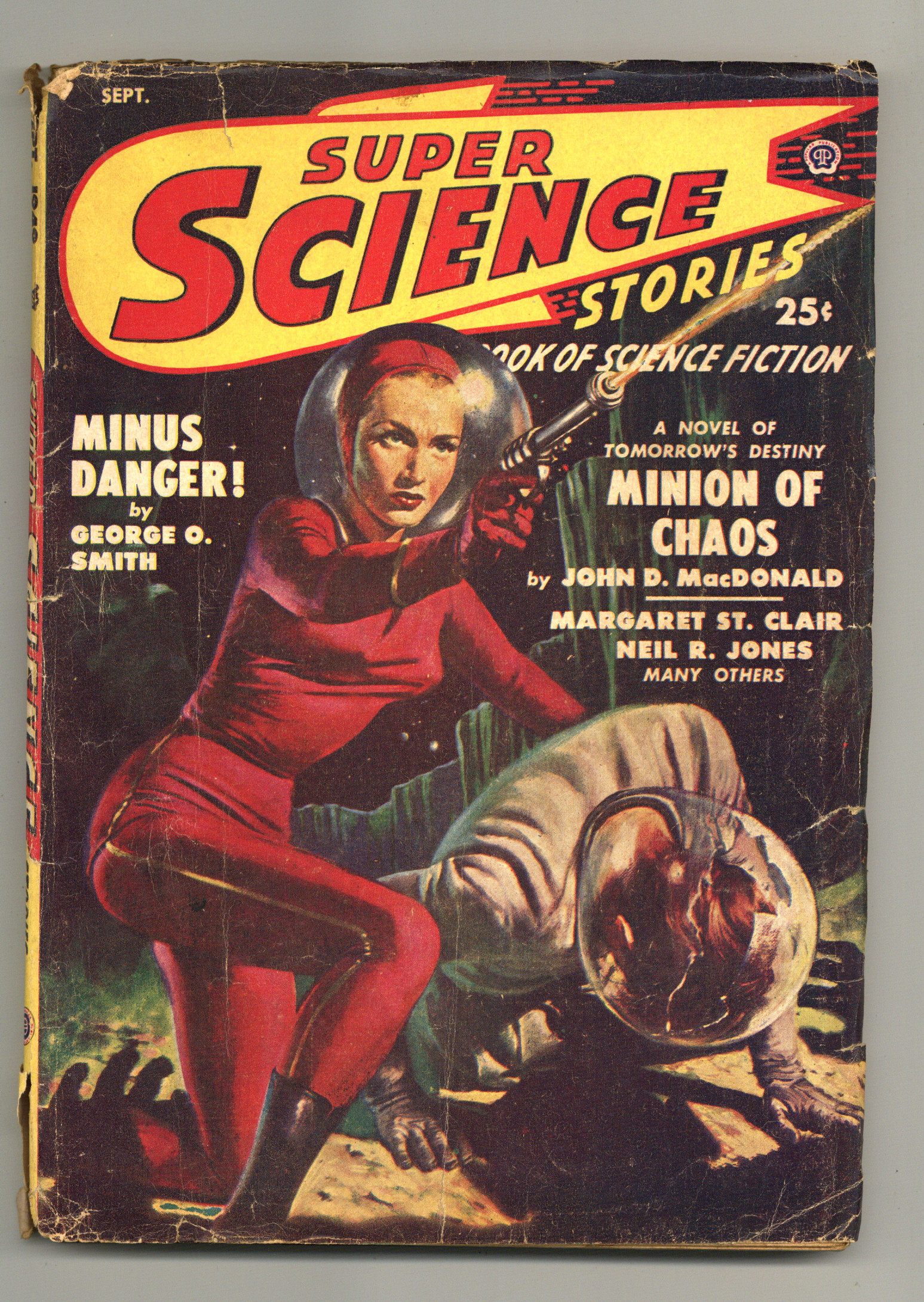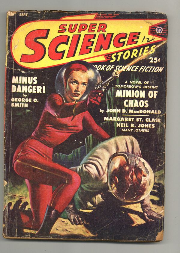 September, 1949. Cover by Lawrence. "Minion of Chaos" by John D. MacDonald, "Minus Danger!" by George O. Smith, "The Metal Moon" by Neil R. Jones, "Bride of Eternity" by Margaret St. Clair, "The Miniature" by John D. MacDonald (as Peter Reed), "World of No Return" by Bryce Walton, and "Star-Brother" by Stanley Mullen. Interior Illustrations by Lawrence, Finlay, Van Dongen, Paul, and Leydenfrost. Softcover Pulp, 7-in. x 9 1/2-in.; 130 Pages, B&W. Cover price $0.25.