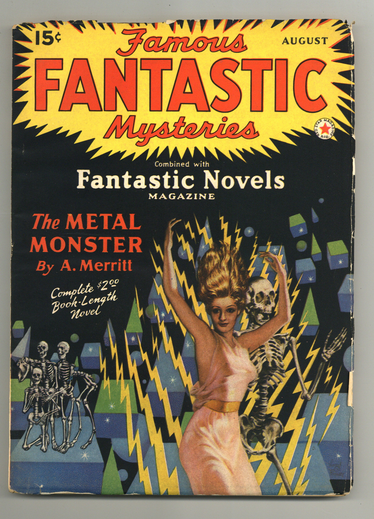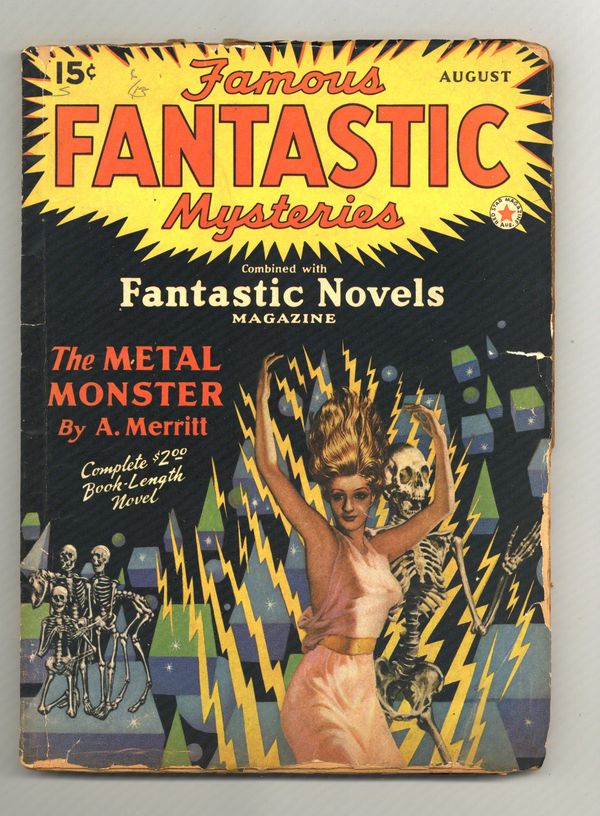 Volume 111, Issue 3 - August, 1942. "Metal Monster" by A. Merritt, and "Afraid of his Shadow" Dorothy Donnell Calhoun. Softcover Pulp, 6 1/2-in x 9 1/2, 128 Pages, B&W. Published by Frank A. Munsey Cover price $0.15.