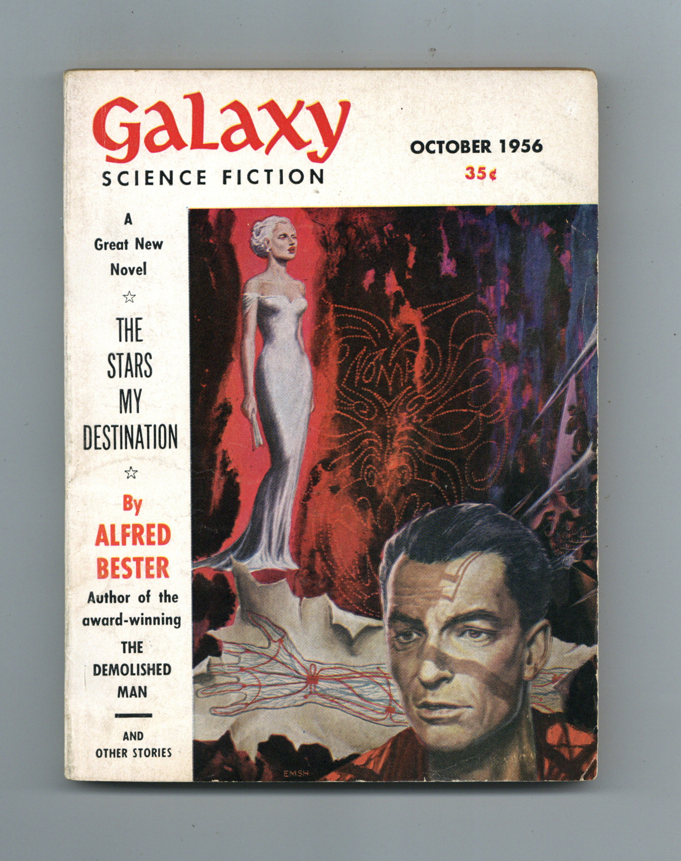October 1956. Cover by Emsh. Stories: "The Stars My Destination" (Part 1 of 4) by Alfred Bester, "Jackpot" by Clifford D. Simak, "Man of Distinction" by Michael Shaara, "Problem" by Alan E. Nourse, "George All The Way" by Richard Wilson. Softcover Pulp Digest, 5-in. x 7-in.; 160 Pages, B&W. Cover price $0.35.
