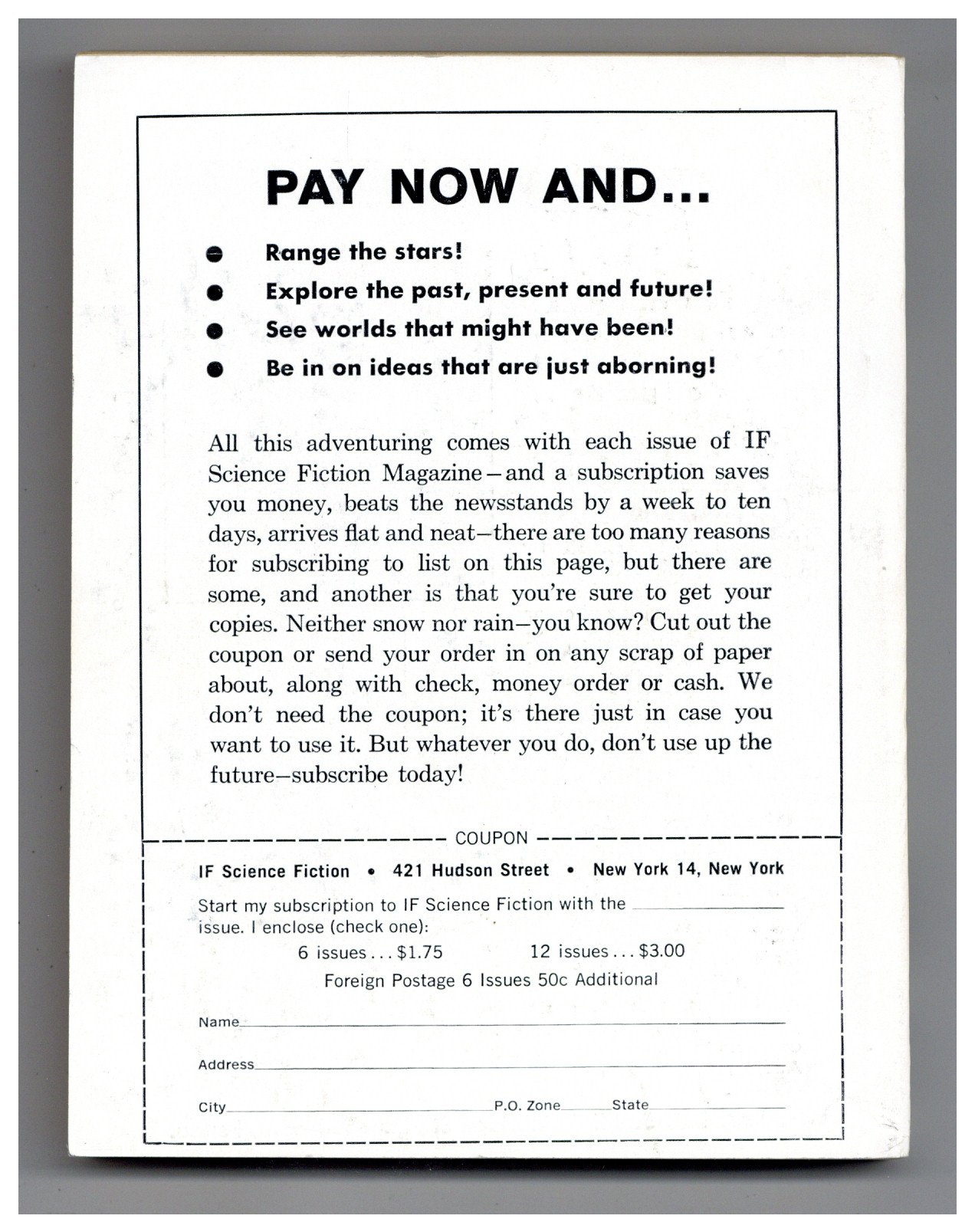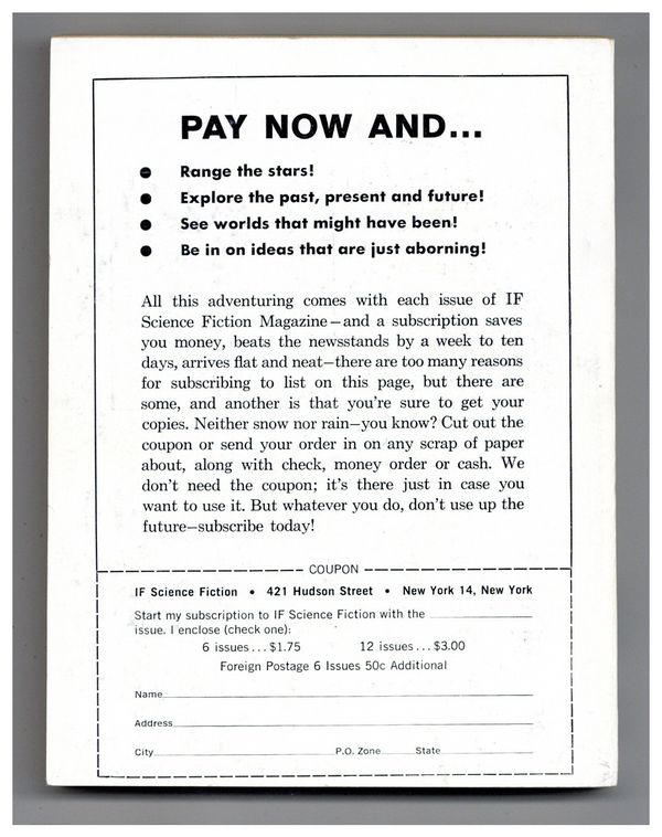 Published Apr 1961 by Galaxy Publications.$2.60- Front cover detached 15%. Water damage: Slight. Staple rust: Slight.