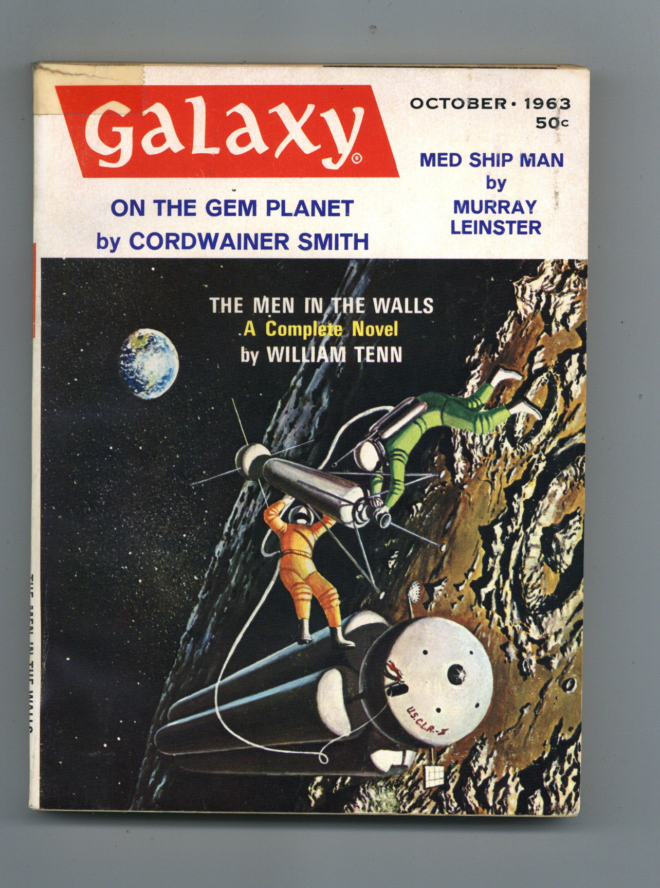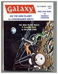 Published Oct 1963 by Galaxy Publications.$6.49October 1963. Cover by Sol Dember. Stories: "The Men in the Walls" by William Tenn, "On The Gem Planet" by Cordwainer Smith, "A Day On Death Highway" by Chandler Elliott, "Med Ship Man" by Murray Leinster, and "Sweet Tooth" by Robert F. Young. Illustrations by Virgil Finlay, Wallace Wood, Lutjens, and Ed Emshwiller (Emsh). Softcover Pulp Digest, 5-in. x 7-in.;194 Pages, B&W. Cover price $0.50.