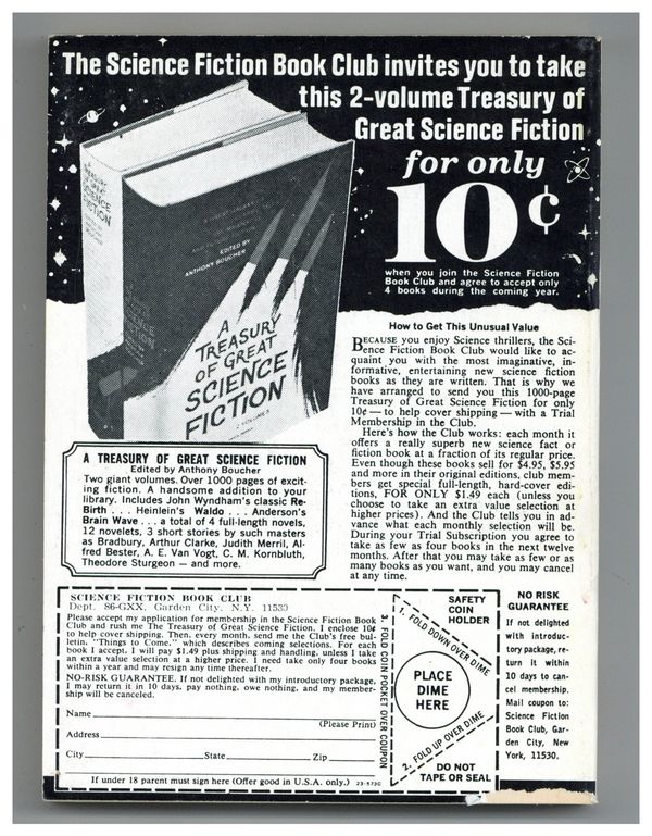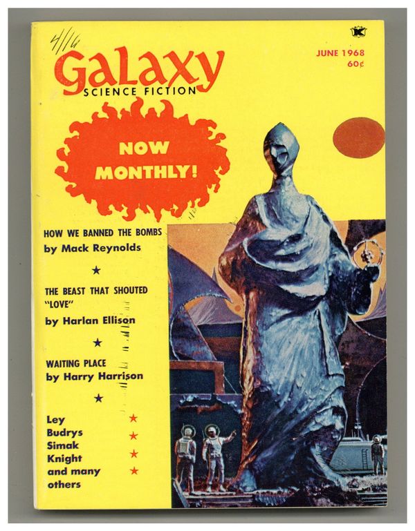 Published Jun 1968 by Galaxy Publications.$15.00June 1968. Cover by Paul Wenzel. Stories: "The Beast That Should Love" by Harlan Ellison, "How We Banned The Bombs" by Mack Reynolds, "Daisies Yet Ungrown" by Ross Rocklynne, "The Garden of Ease" by Damon Knight, "Goblin Reservation" (Part 2 of 2) by Clifford D. Simak, "Detour To Space" by Robin Scott, "Waiting Place" by Harry Harrison, "Booth 13" by John Lutz. Illustrations by Jack Gaughan, Vaughan Bode, Joe Wehrle Jr., and Gray Morrow. Softcover Pulp Digest, 5-in. x 7-in.; 194 Pages, B&W. Cover price $0.60.