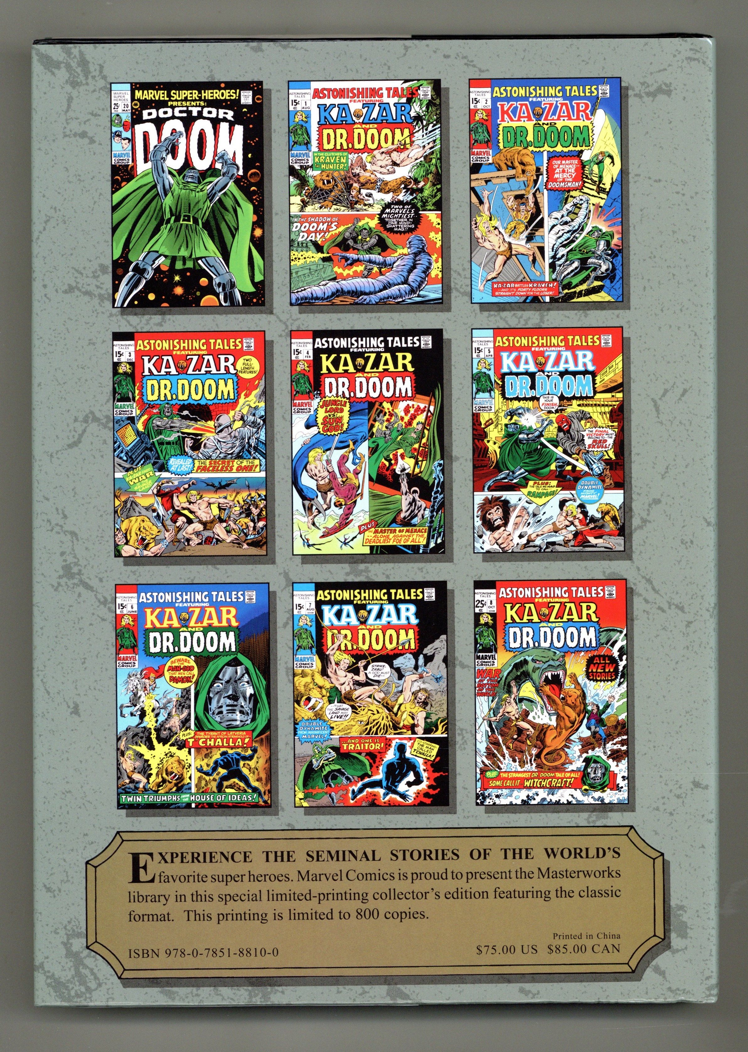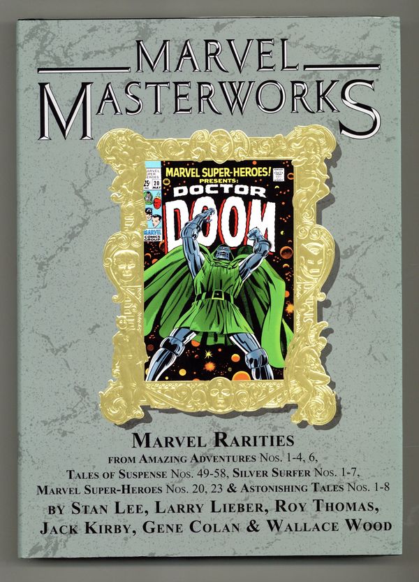 Volume 209 - 1st printing. "Marvel Rarities: Book 1!" Collects material from Amazing Adventures (1961 1st Series) #1-5, Tales of Suspense (1959-1968) #49-58, Silver Surfer (1968-1970 1st Series) #1-7, Marvel Super Heroes (1966-1982 1st Series) #20 and 23, and Astonishing Tales (1970-1976) #1-8. Cover by Larry Lieber. That's right, True Believer! Because you demanded it, the Marvel Masterworks proudly bring you a collection of the rarest stories from the Marvel Age of Comics! Experience classic tales featuring mystic hero Dr. Droom, arch-villain Dr. Doom and the cosmic Watcher in one must-have Masterworks collection! Featuring some of the era's greatest talents - Stan Lee, Jack Kirby, Roy Thomas and Gene Colan - it's a perfect Masterworks pedigree! This volume will also include a host of amazing extras from the 1960s peak of the Marvel Age - original Marvel Merry Marching Society memorabilia; rare pinups, posters and prints; and more! It's the volume you've dreamed of, so reserve your copy today! Hardcover, 344 pages, full color. NOTE: Limited to 0 copies. Cover price $75.00.