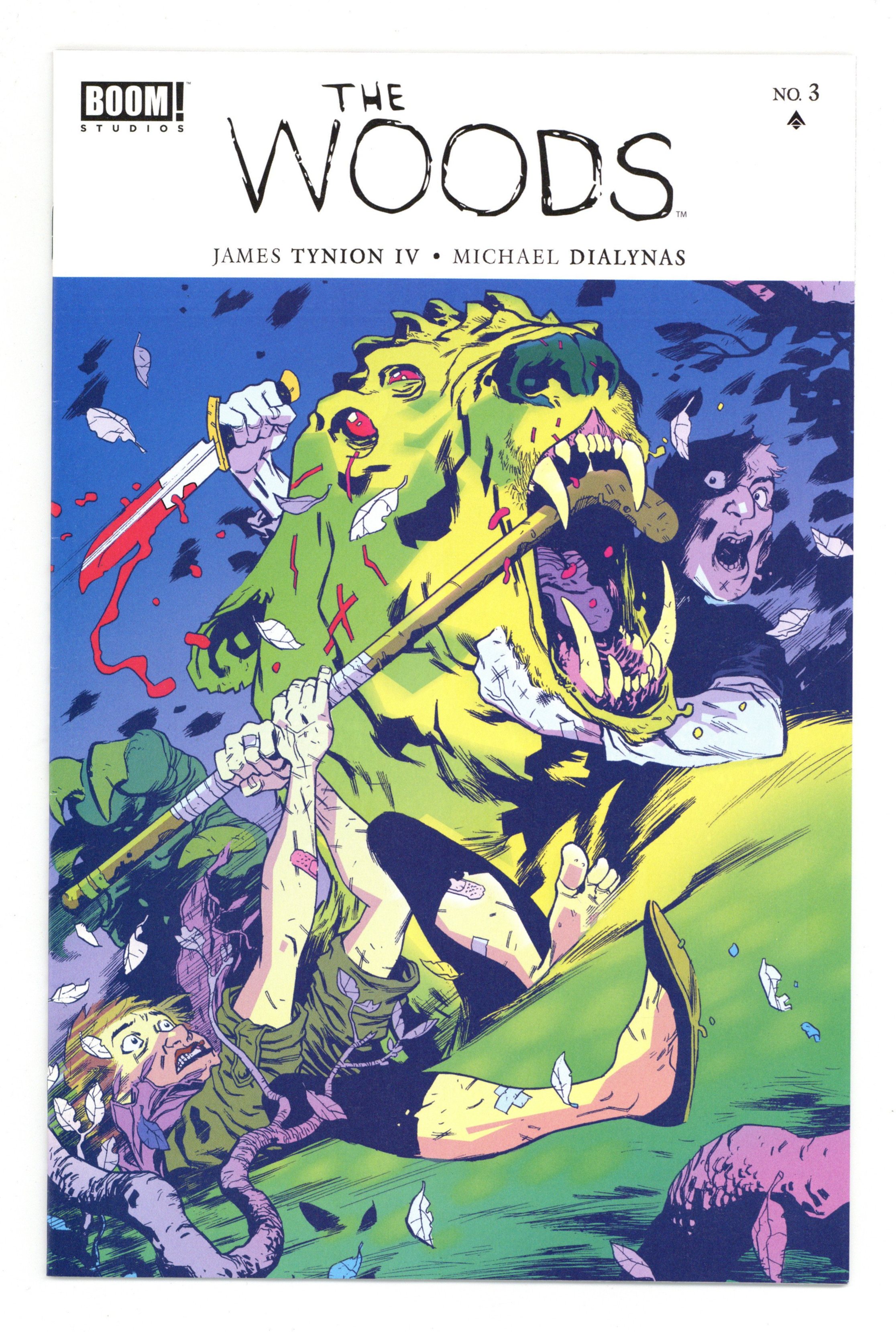 Published Jul 2014 by Boom Studios.$8.49Written by James TynionIV. Art by Michael Dialynas. Cover by Ramon K. Perez. As the darkness of night falls, monsters begin to reveal themselves-from both outside and inside the school. Maria struggles to break free of her false imprisonment before Coach Clay succeeds in instilling martial law, and the exploratory crew finds themselves being hunted by unseen shadows. 28 pages, full color. Cover price $3.99.
