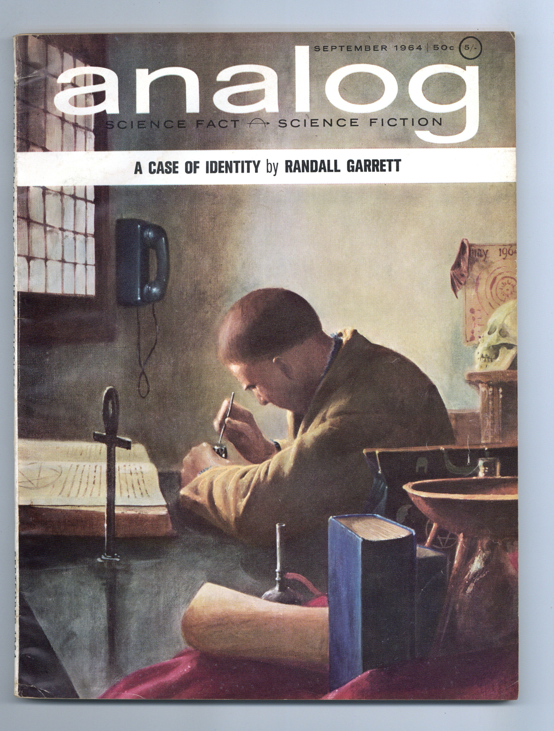 August 1964. Cover Art by John Schoenherr. Science Fact: "The Risk-Takers" by Carolyn Meyer. Novelette: "A Case Of Identity" by Randall Garrett. Short Stories: "The Machmen" by James H. Schmitz. Plus several other stories. Kelly Freas Illos. 8.25" x 11", 96 pages, B&W. Cover price $0.50.