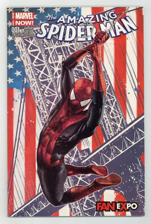 Fan Expo Convention Exclusive Variant Cover by Mico Suayan. Written by Dan Slott, Christos Gage, Christopher Yost, Joe Caramagna and Peter David. Art by Humberto Ramos, Javier Rodriguez, Will Sliney, Giuseppe Camuncoli, Chris Eliopoulos, David Baldeon, Ramon Perez and Victor Olazaba. The Greatest Super Hero of All Time RETURNS! The world may have changed since Spidey's been gone, but so has Peter Parker. This is a man with a second chance at life, and he's not wasting a moment of it. Same Parker Luck, new Parker attitude. Putting the 'friendly' back in the neighborhood, the 'hero' back into 'super hero,' and the 'amazing' back into 'Spider-Man!' Also returning: The recharged and reenergized ELECTRO! 96 pages, full color.