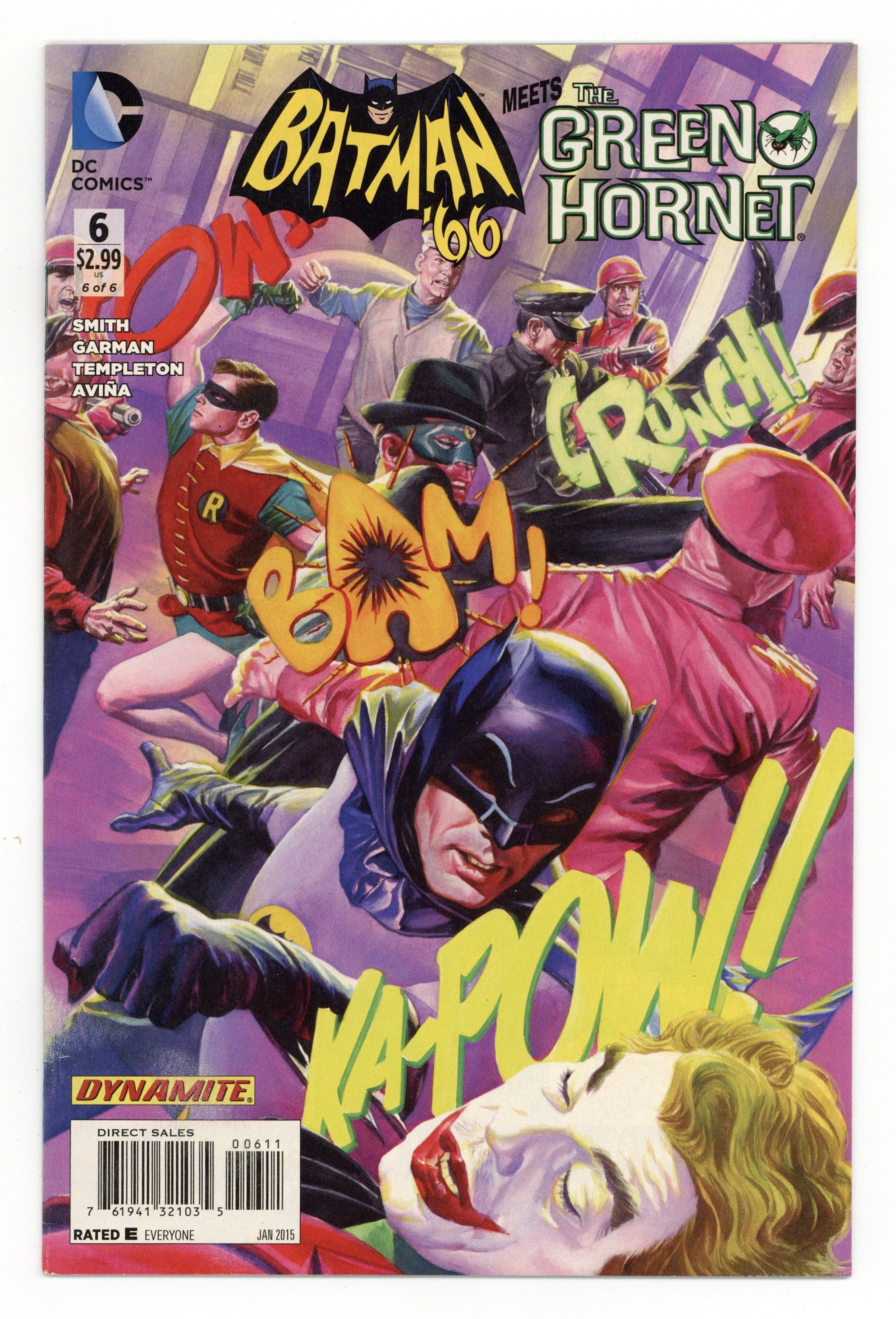 Written by Kevin Smith and Ralph Garman. Art by Ty Templeton. Cover by Alex Ross. FINAL ISSUE! A bomb falls from the sky, threatening the good people of Gotham City, and Batman and the Green Hornet have just one chance to take out this deadly threat. Meanwhile, Franco Bollo, the man whose stolen stamps started General Gumm and The Joker's current crime spree, has himself been stolen. Will this enable the terrible twosome to fly away scot-free? Or will our heroes finally save the day? 28 pages, full color. All Ages Cover price $2.99.