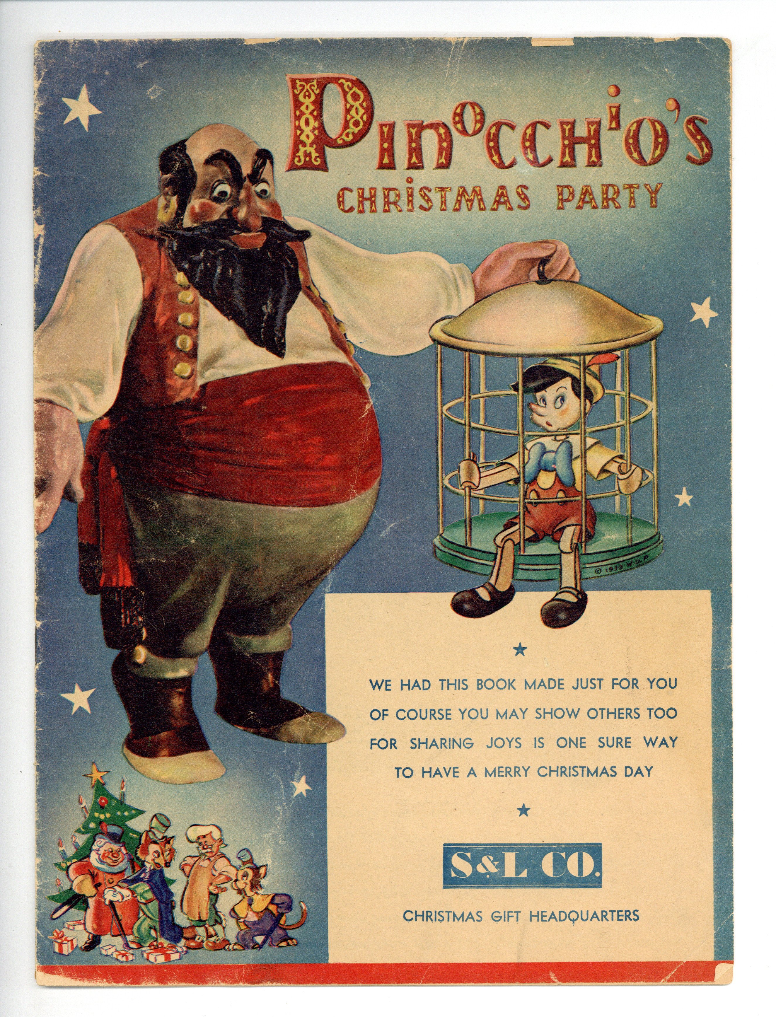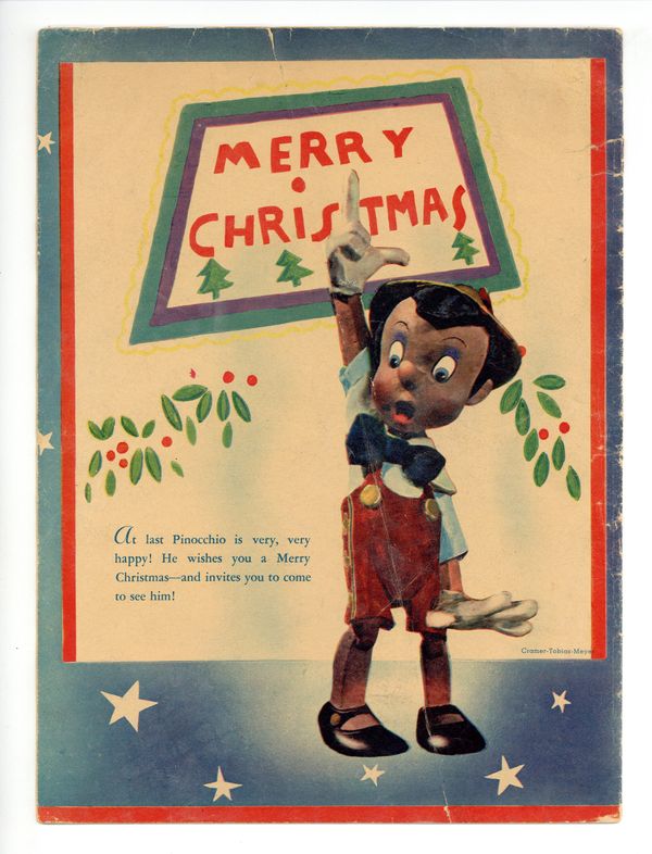Sixteen-page paper premium, illustrated with color pictures of carved Pinocchio and other Disney characters. Stamp on front cover will vary based on where each copy was distributed. 16 pages, 8" x 10-3/4", full color.