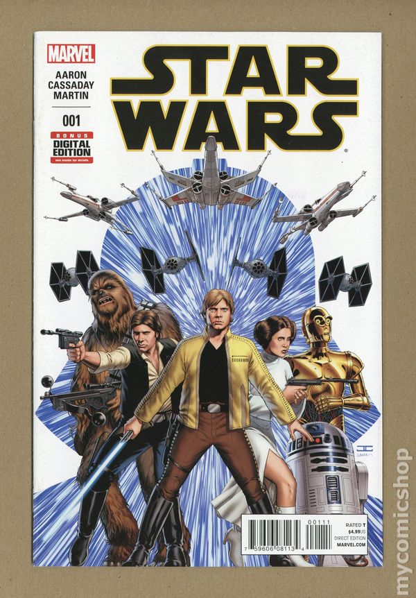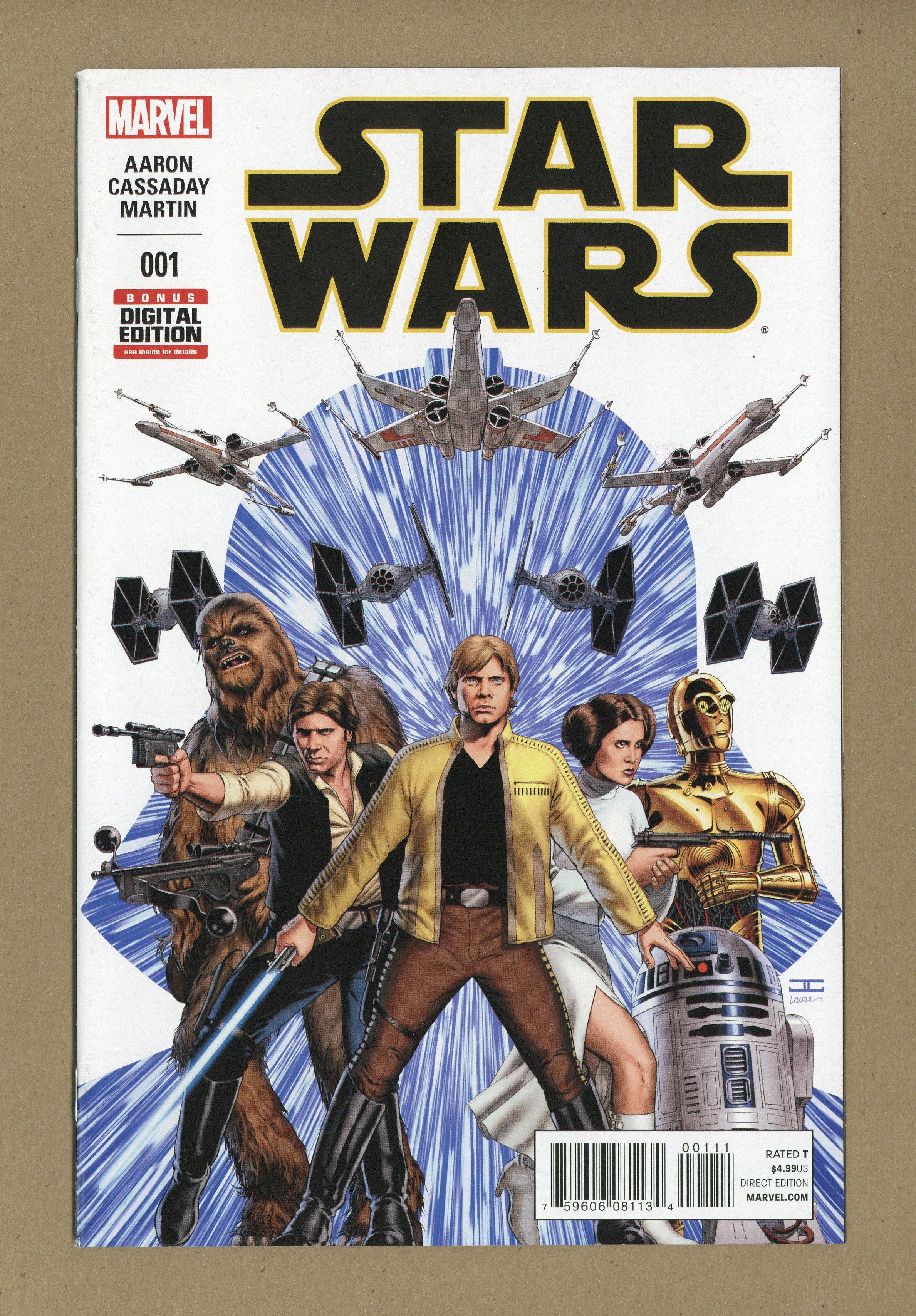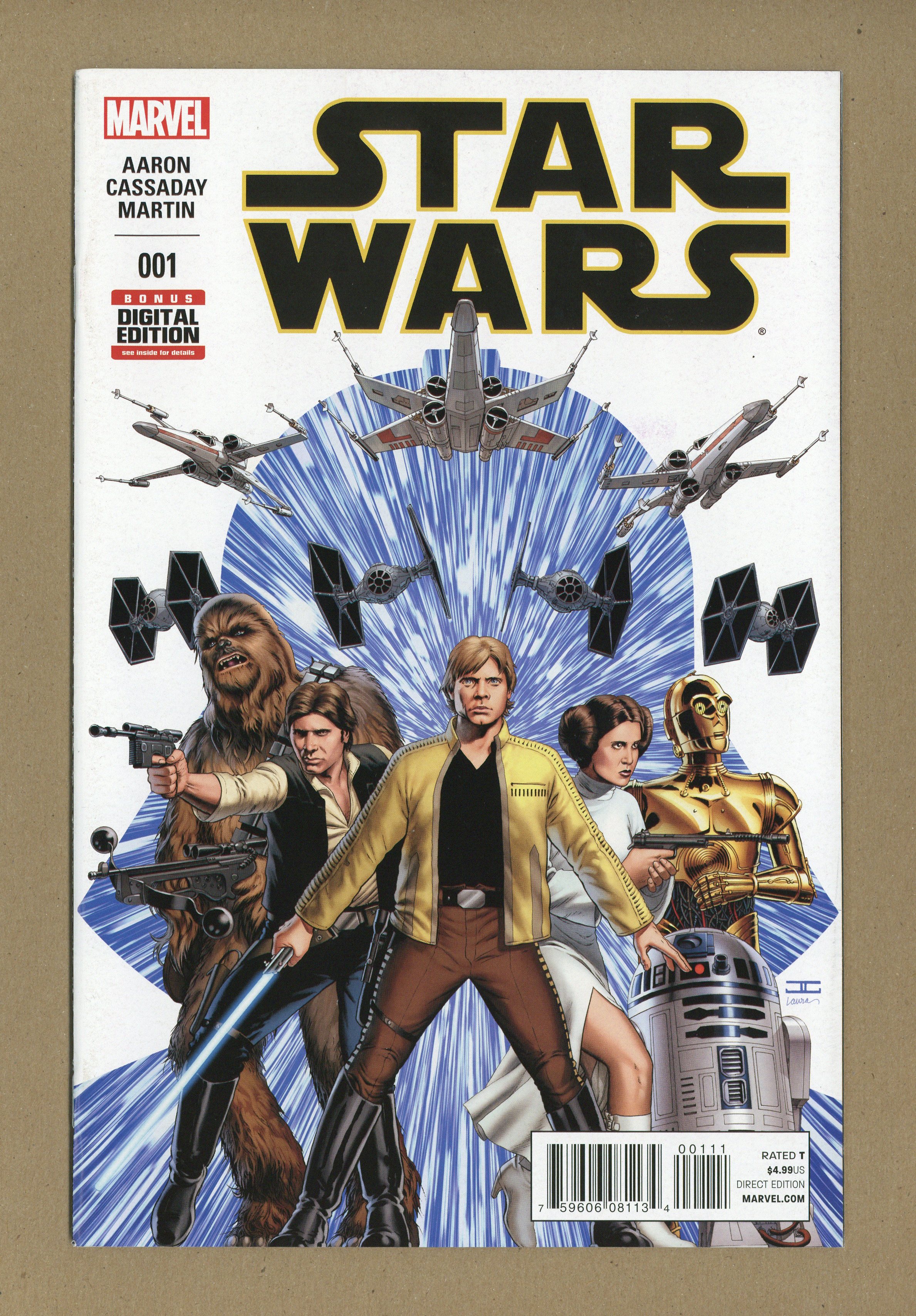 Ends Dec 15 9:34 PM CST Bid History 9 bids Current Bid $51 Your Secret Max Bid If you'd like to bid, please log in or register. Written by Jason Aaron. Art and Cover by John Cassaday. THE GREATEST SPACE ADVENTURE OF ALL TIME RETURNS TO MARVEL! Luke Skywalker and the ragtag band of rebels fighting against the Galactic Empire are fresh off their biggest victory yet-the destruction of the massive battle station known as the Death Star. But the Empire's not toppled yet! Join Luke along with Princess Leia, smugglers Han Solo and Chewbacca, droids C-3PO and R2-D2 and the rest of the Rebel Alliance as they strike out for freedom against the evil forces of Darth Vader and his master, the Emperor. This is the Star Wars saga as only Marvel Comics could make it! 48 pages, full color. Rated T Cover price $4.99.