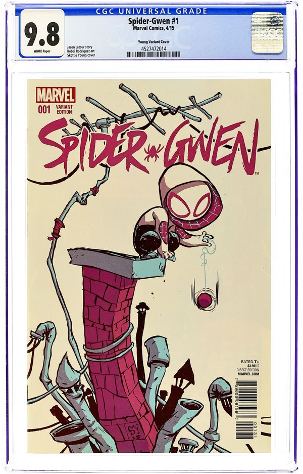 Tags: Spider-Man$28.00Written by Jason Latour. Art by Javier Rodriguez. Cover by Skottie Young. SPIDER-GWEN SPINS INTO HER OWN SERIES! BECAUSE YOU DEMANDED IT! The breakout hit of the biggest Spider-Event of the century is taking comic shops by storm this winter with her own new ongoing series - SPIDER-GWEN! Gwen Stacy is Spider-Woman, but you knew that already. What you DON'T know is what friends and foes are waiting for her in the aftermath of Spider-Verse! 28 pages, full color. Rated T+ Cover price $3.99.