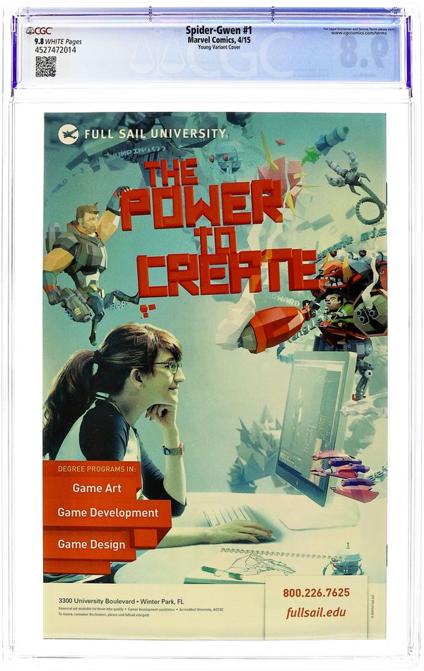Written by Jason Latour. Art by Javier Rodriguez. Cover by Skottie Young. SPIDER-GWEN SPINS INTO HER OWN SERIES! BECAUSE YOU DEMANDED IT! The breakout hit of the biggest Spider-Event of the century is taking comic shops by storm this winter with her own new ongoing series - SPIDER-GWEN! Gwen Stacy is Spider-Woman, but you knew that already. What you DON'T know is what friends and foes are waiting for her in the aftermath of Spider-Verse! 28 pages, full color. Rated T+ Cover price $3.99.