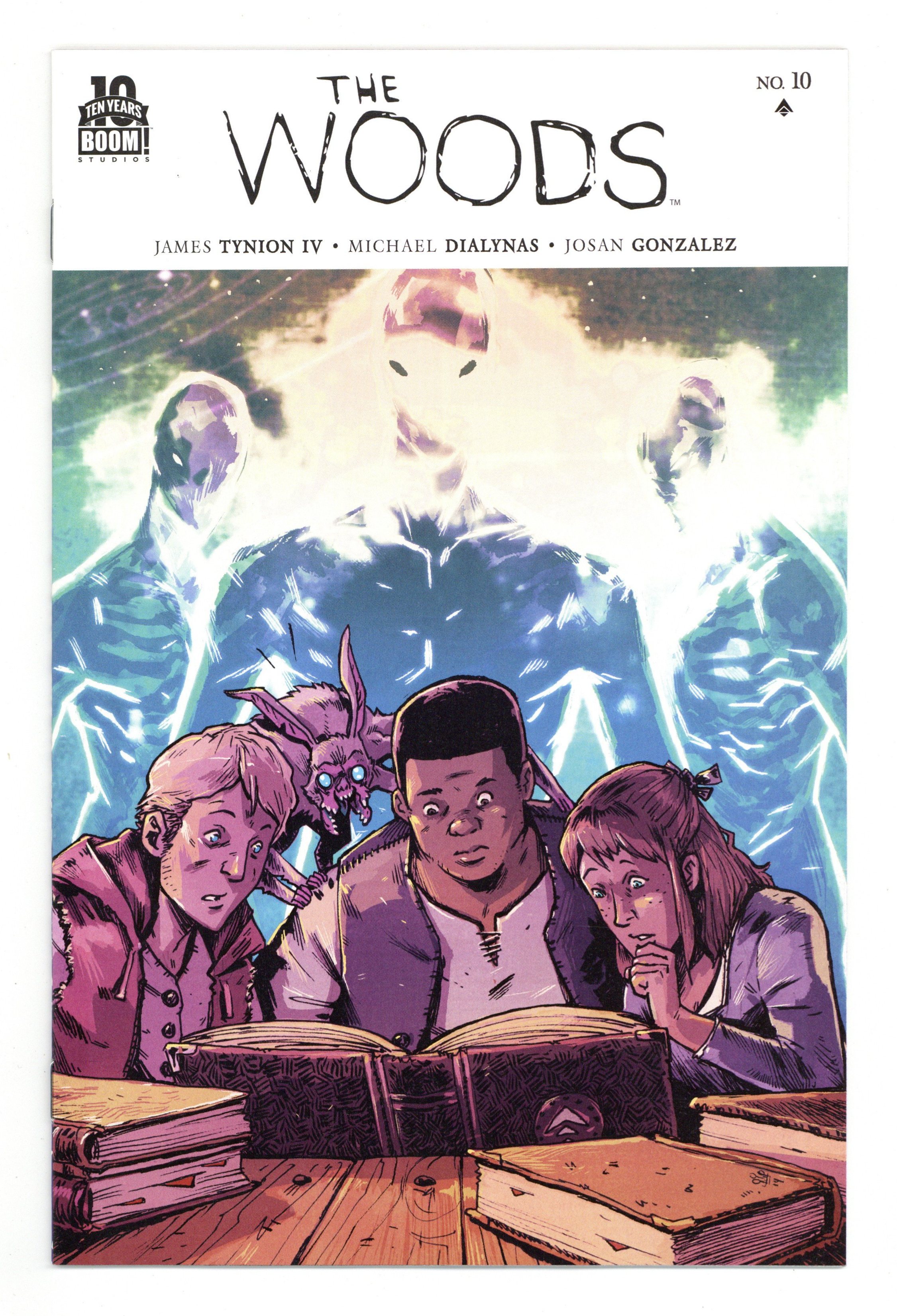 Written by James Tynion IV. Art and Cover by Michael Dialynas. The more the crew finds out about the woods, the deeper the mystery gets. With Clay and the Duke teaming up to try and force the school into servitude for the New London army, the kids need to think up a plan to save their peers, and fast. Can they escape New London and make it back to the school in time to warn everyone? And with Adrian uncontrollable and on the loose, no one knows what his next move will be. 28 pages, full color. Cover price $3.99.