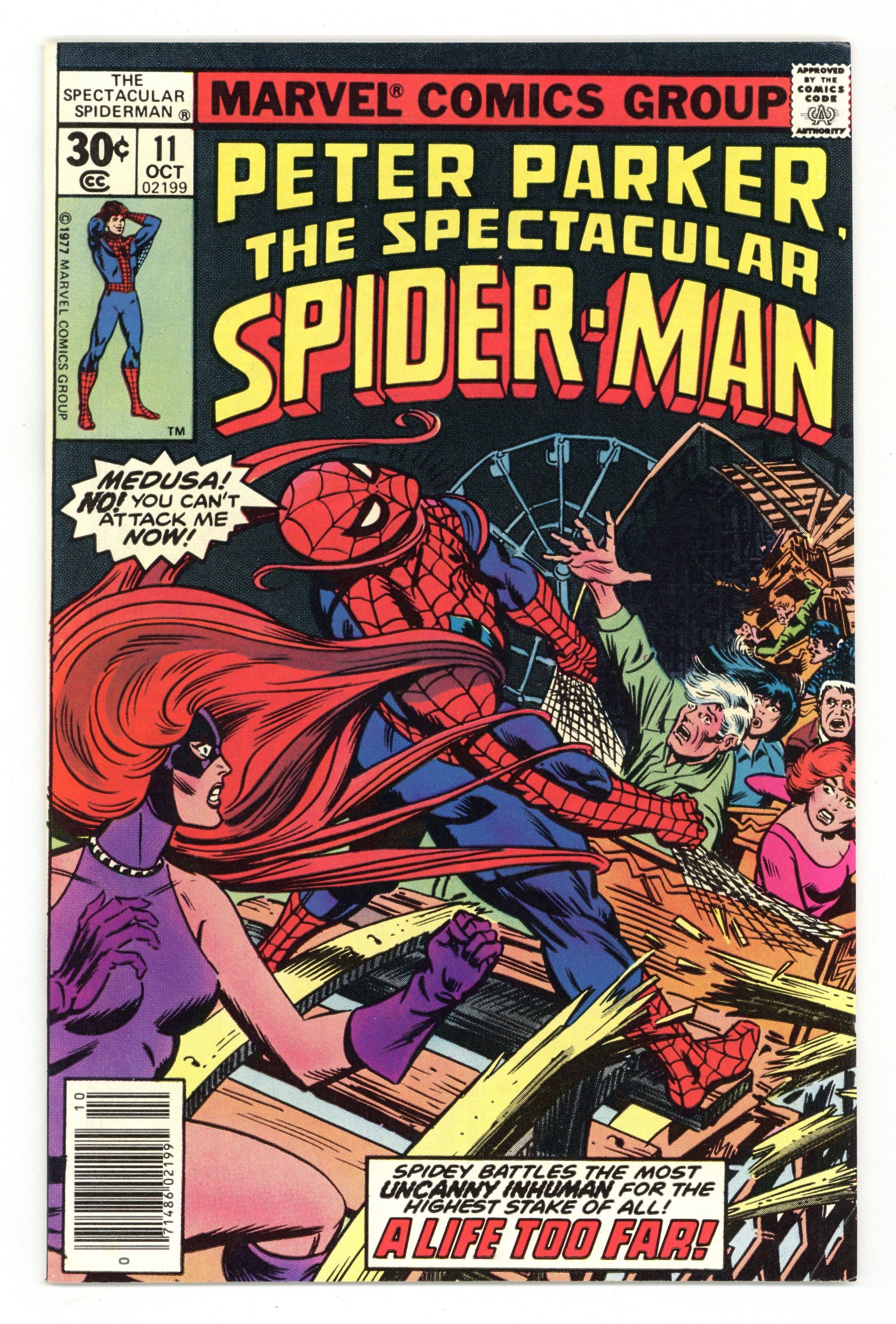 Mark Jeweler Advertisement Insert Variant. 2 pages heavy stock paper with ad for jewelry. "A Life Too Far" Guest-starring Medusa and the Inhumans. Script by Chris Claremont. Pencils by Jim Mooney. Inks by Mike Esposito. Cover by Al Milgrom. It's a race against time as the web-slinger has to deliver a serum to a dying patient in the operating room! But wait, there's another superhero that desperately needs that serum too...Medusa! The Spectacular Spider-Man and the long-haired Inhuman battle at Coney Island! And if the wall-crawler successfully beats Medusa, he will face Gorgon, Karnak, Triton, and Black Bolt next! Cameo appearance by Mary Jane Watson. Last 30ยข issue. (Note: A 35-cent cover price variant exists for this issue.) 32 pages Cover price $0.30.