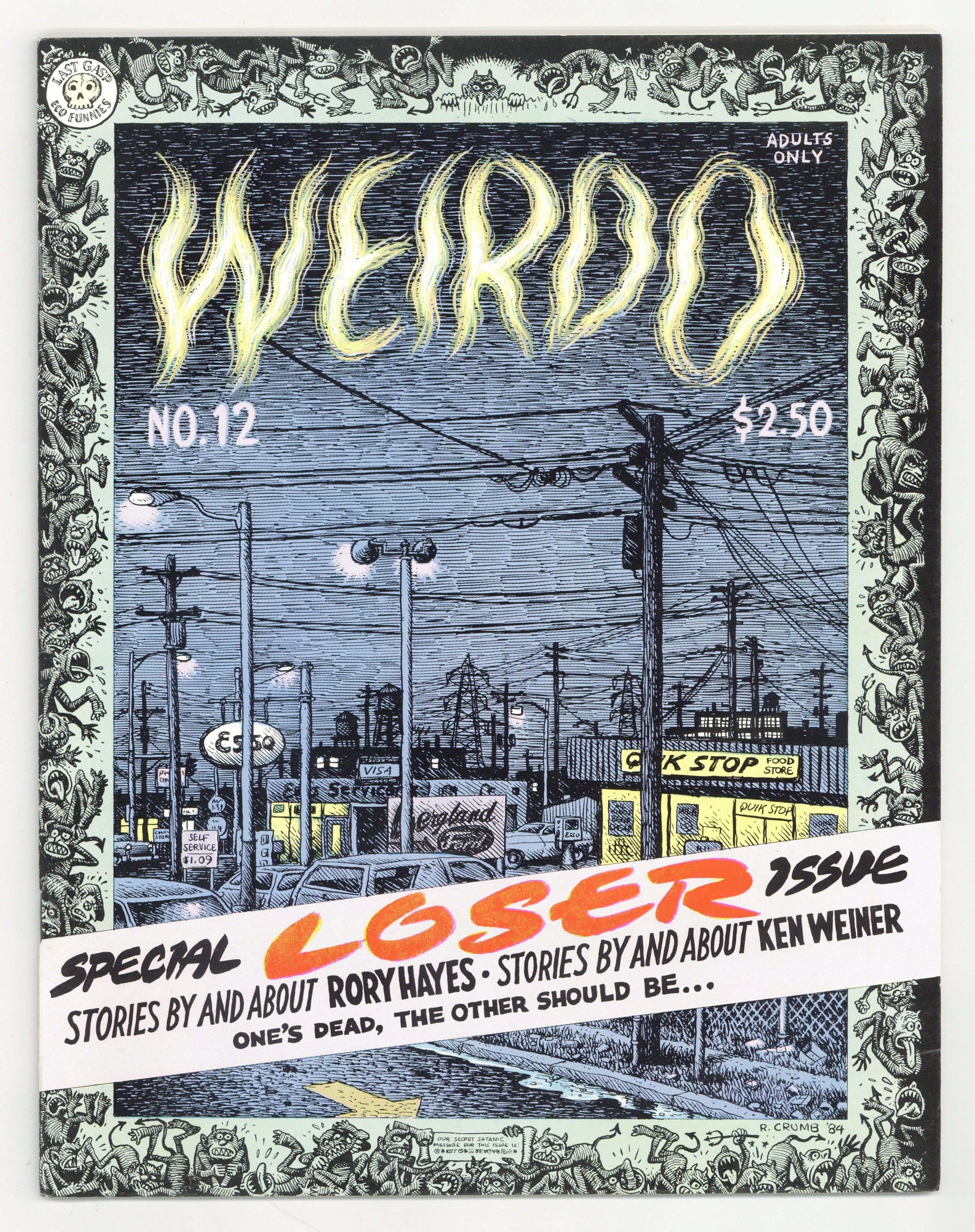 Cover by Robert Crumb. "Skinboy Lives in the City," script and art by Jim R. Williams; Skinboy samples city night life. Rory Hayes: An Appreciation by Bill Griffith. "Sour Grapes," script and art by Peter Bagge; Some disagreements between friends. Untitled Mode O'Day and Her Pals story, script and art by Robert Crumb; Mode's shallow attitudes are exposed. "The Rory Story," script by Rory Hayes and Bill Griffith, art by Bill Griffith; Hayes' quotes adapted to a metaphor for his life. "The Keeper of the Mind," script and art by Rory Hayes; Popoff samples a mixture of drugs. 44 pgs., B&W. 8-in. x 11-in. $2.50. Cover price $2.50.