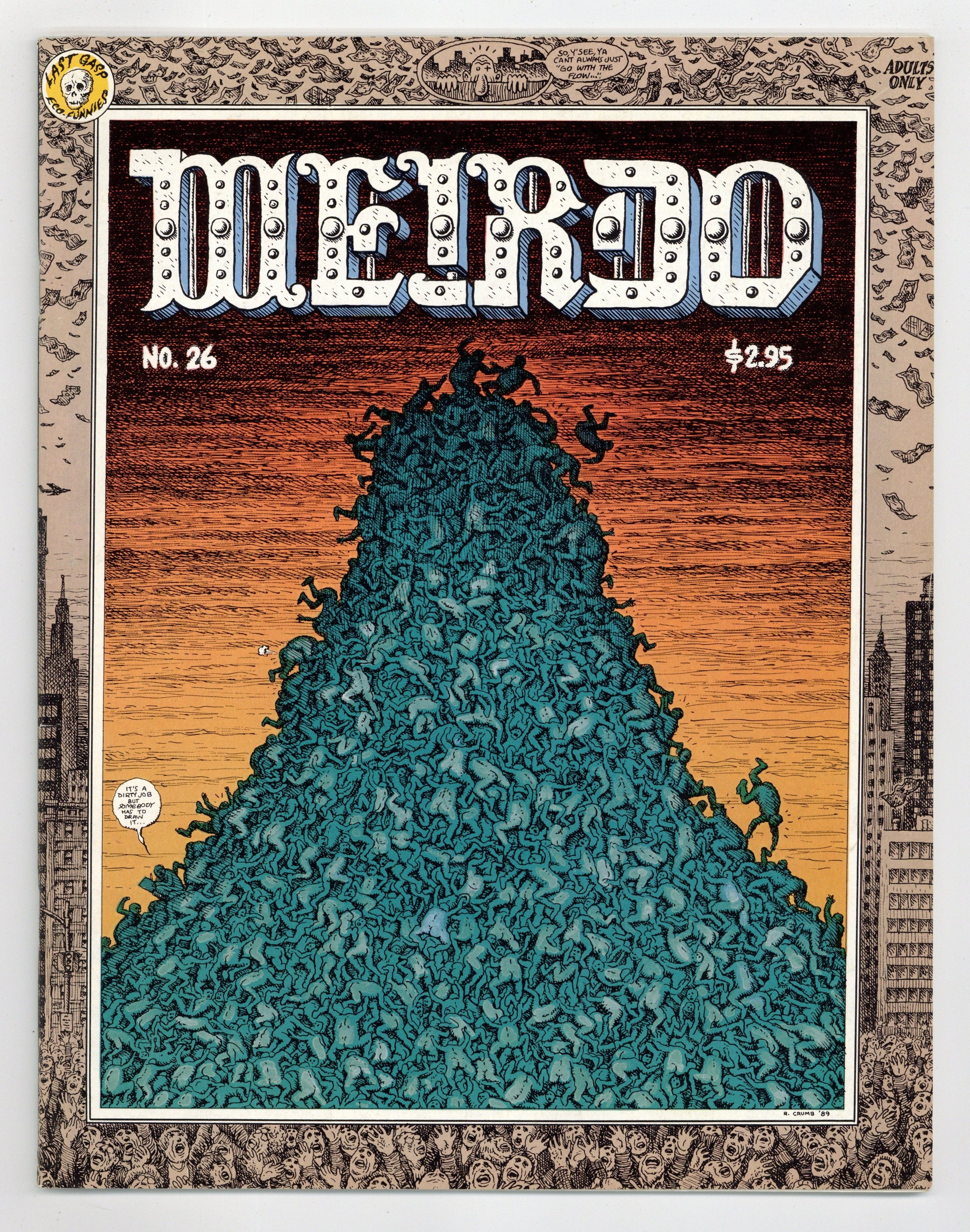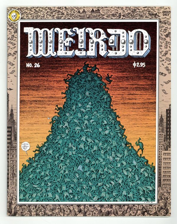 Cover by Robert Crumb. Harvey Sez column; Harvey Pekar praises the new comics journalism, including the likes of Joe Sacco, Bill Tulp and Tom Keough. "People... Ya Gotta Love 'Em!", script and art by Robert Crumb; The struggle through the great mass of humanity. "A Bird in the Beard," script and art by Penny Moran Van Horn; DJ Don has a crush on Barb. "Quaker School Q-Ties in Plan Against The Boys," script and art by Phoebe Gloeckner; A group of schoolgirls discover one of their number has reached puberty. Untitled story, script and art by Spain Rodriguez; Big Bitch acquires a formula enabling the total recall of dreams. "A Scam a Day: Growing Up as Arnie's Girl," script and art by Aline Kominsky-Crumb; Arnie's brutal parenting. "Where Am I?," script and art by Roy Tompkins; A is man plagued by a violent hallucination. 44 pgs., B&W. 8-in. x 11-in. $2.95. Cover price $2.95.