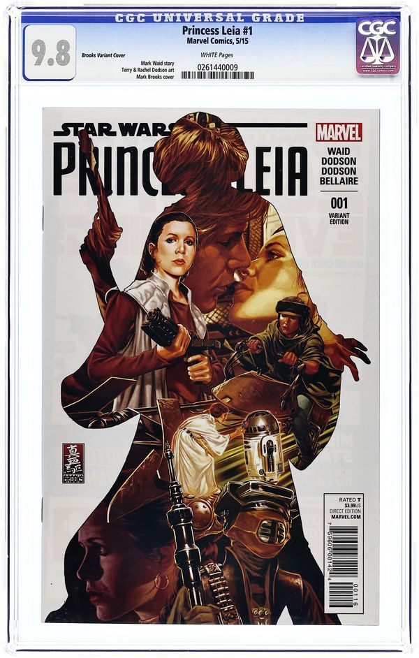 Limited 1 for 50 Retailer Incentive Variant Cover. Written by Mark Waid. Art by Terry Dodson. Cover by Mark Brooks. When Princess Leia Organa was captured by the Empire as a Rebel spy, she never betrayed her convictions, even in the face of the complete destruction of her home world, Alderaan. When her rescue came, she grabbed a blaster and joined the fight, escaping back to the Rebel Alliance and helping strike the biggest blow against the Empire-the destruction of the Death Star. But in the aftermath of that victory, the question remains...what is a princess without a world? 28 pages, full color. Rated T Cover price $3.99.