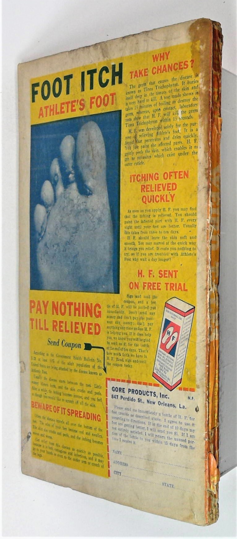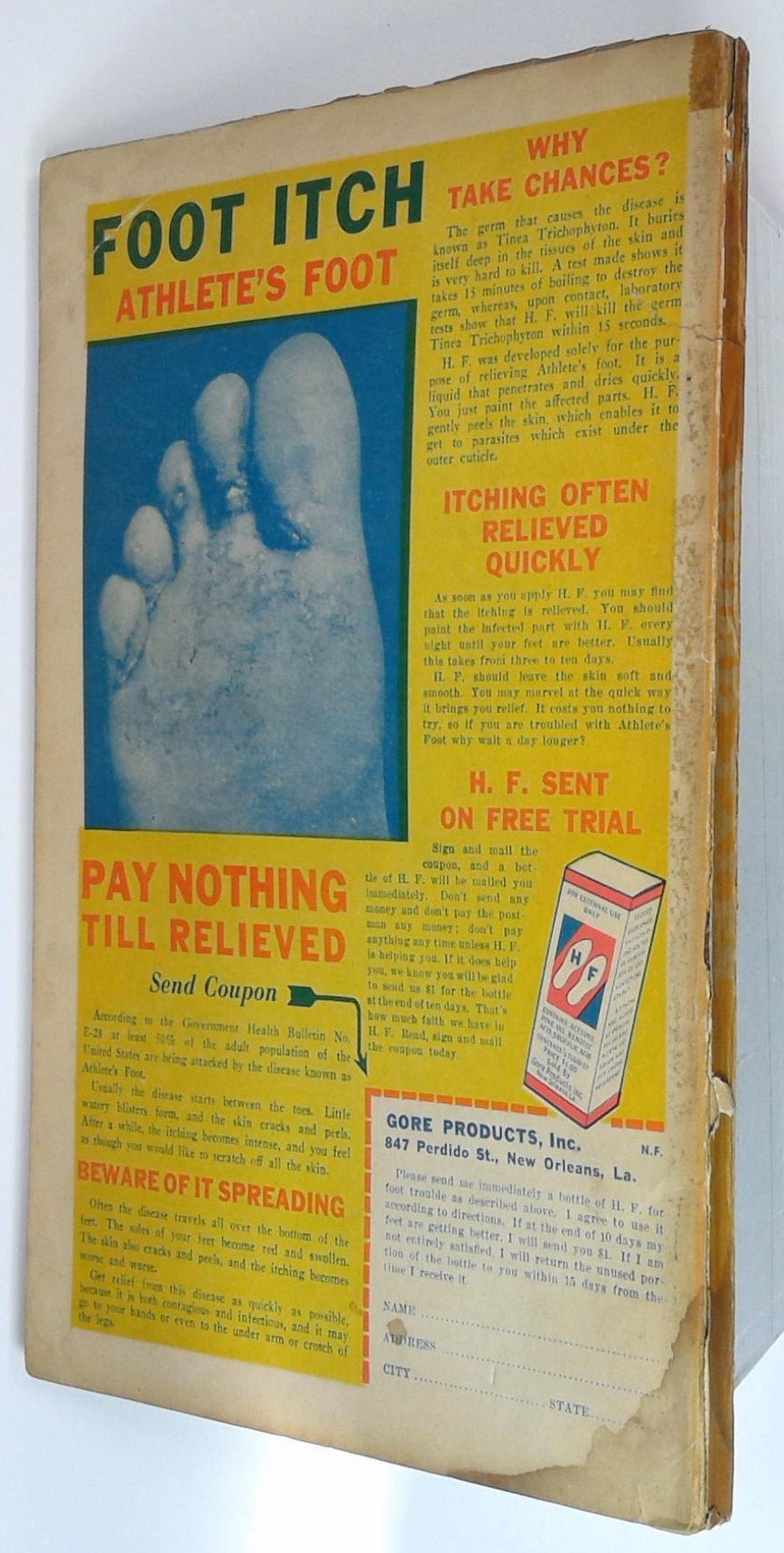 - Front cover detached 20%. Back cover detached 10%. Water damage: Slight. Staple rust: Moderate.