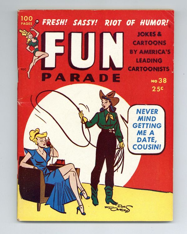 Published Jun 1948 by Fun Parade,Inc.$8.00Humor digest featuring jokes and cartoons for men. Cover by Don Flowers. Kyle McDonnell & Marie McDonald inside photo covers. two 6 page comic strips "Tommy Tween" by ?? and "Chickie Ricks the Flying Fool" by ??. Cartoons by Kirk Stiles, Vic Herman, Reamer Keller, Henry Boltinoff, and others. 5-in x 7-in. 100 pages, B&W. Cover price $0.25.