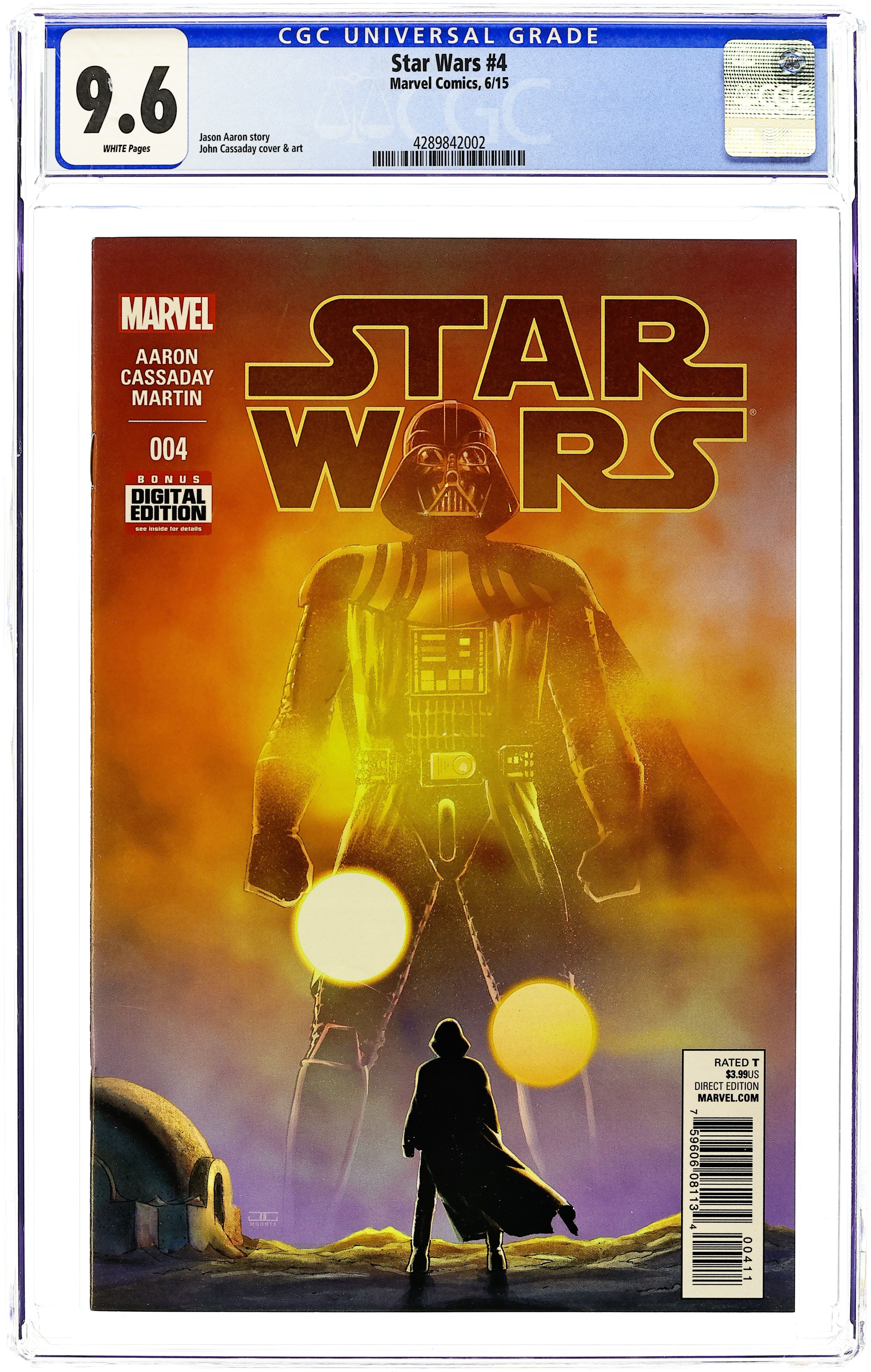 Written by Jason Aaron. Art and Cover by John Cassaday. THE GREATEST SPACE ADVENTURE OF ALL TIME CONTINUES! Luke Skywalker is NOT a Jedi-not yet, at least. He's only ever met one Jedi in his life...and he died. So, Luke's quest leads him back to Obi-Wan's hut...on Tatooine. 28 pages, full color. Rated T Star Wars Lucasfilm Ltd. & TM. All rights reserved. Used under authorization. Text and illustrations for Star Wars are 2015 Lucasfilm Ltd. Cover price $3.99.