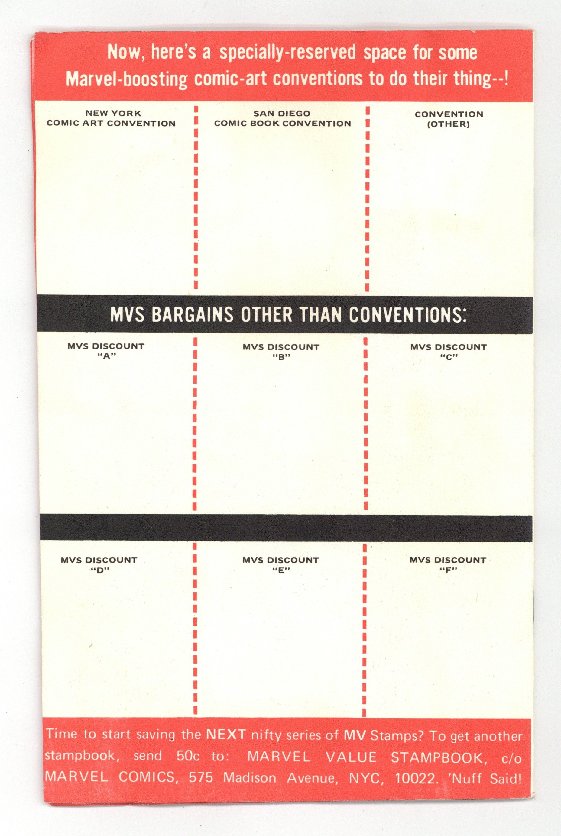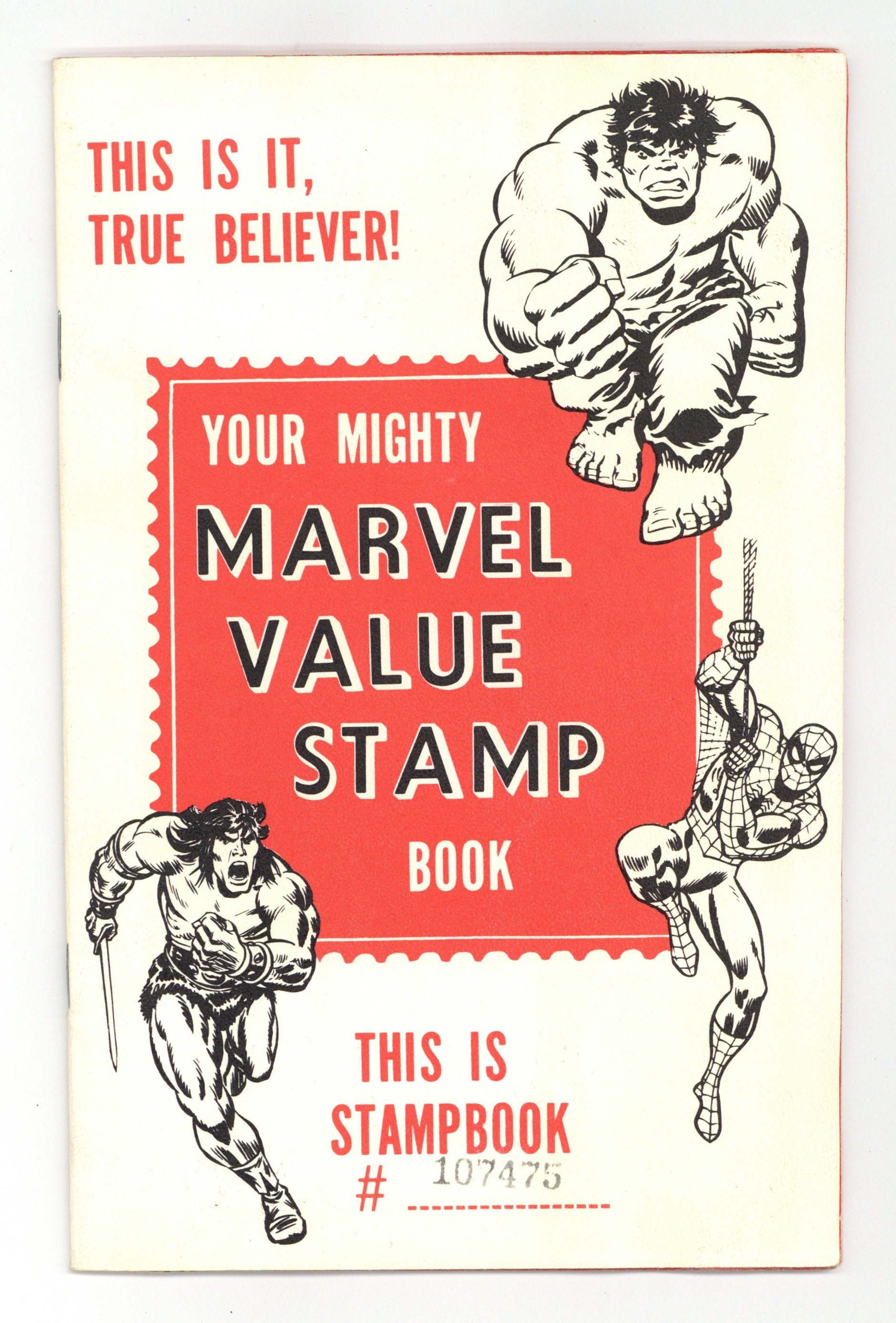 Partially or fully completed Series A Marvel Value Stamp book, stamps numbered 1-100. Softcover 5 1/2-in. x 8 1/2-in. 16 pages B&W (Stamps are in full color). NOTE: See individual item listings to determine how many stamps are present. Cover price $0.50.