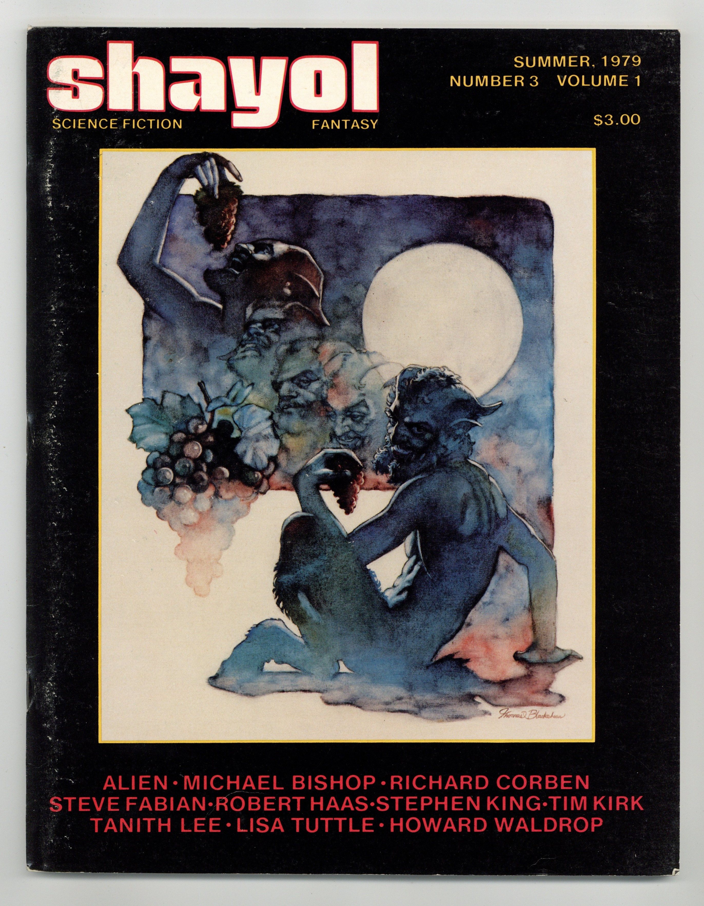 Published Jun 1979 by Flight Unlimited, Inc..$27.00Summer 1979, Number 3 Volume 1 (on cover). Magazine containing science fiction and fantasy short stories, reviews, essays, and more. This issue: cover art by Thomas Blackshear. Writers Tanith Lee, C. J. Cherryh and others. Interior artwork by Clyde Caldwell, Richard Corben, Howard Chaykin, and others, plus a Stephen Fabian portfolio. 8 1/2-in. x 11-in. 64pg, BW. Cover price $3.00.
