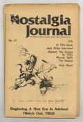 Now dubbed The "New" Nostalgia Journal, #27 is the issue in which the outspoken editor Gary Groth and publisher Fantagraphics took over. Includes Frazetta cover art and classified ads by and for Six Gun Heroes: A Price Guide to Movie Cowboy Collectibles, Toronto Star Trek 76, Star Trek Galore, Bud Plant, Jerry Bails, and more. Also includes a long editorial by Groth, a Jack Kirby interview, a review of Edward Bryant's Among the Dead and Other Events Leading to the Apocalypse by Alan Brennert, an interview with Alan Light and Murray Bishoff, The Creative Experience by Jim Wilson, and Fanzine reviews. 36 pgs, folded newsprint. July, 1976. (With issue #34, The New Nostalgia Journal would become The Comics Journal, one of the most respected and controversial comics history and criticism magazines ever).