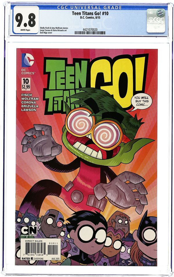 Written by Sholly Fisch and Amy Wolfram. Art by Jorge Corona and Dario Brizuela. Cover by Dan Hipp. After responding to an ad in a comic book, Beast Boy is the proud owner of a brand new pair of Hypno-Specs - and he's not afraid to use them! 28 pages, full color. All Ages Cover price $2.99.