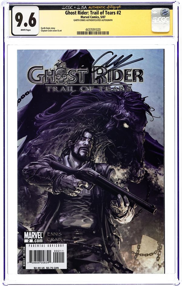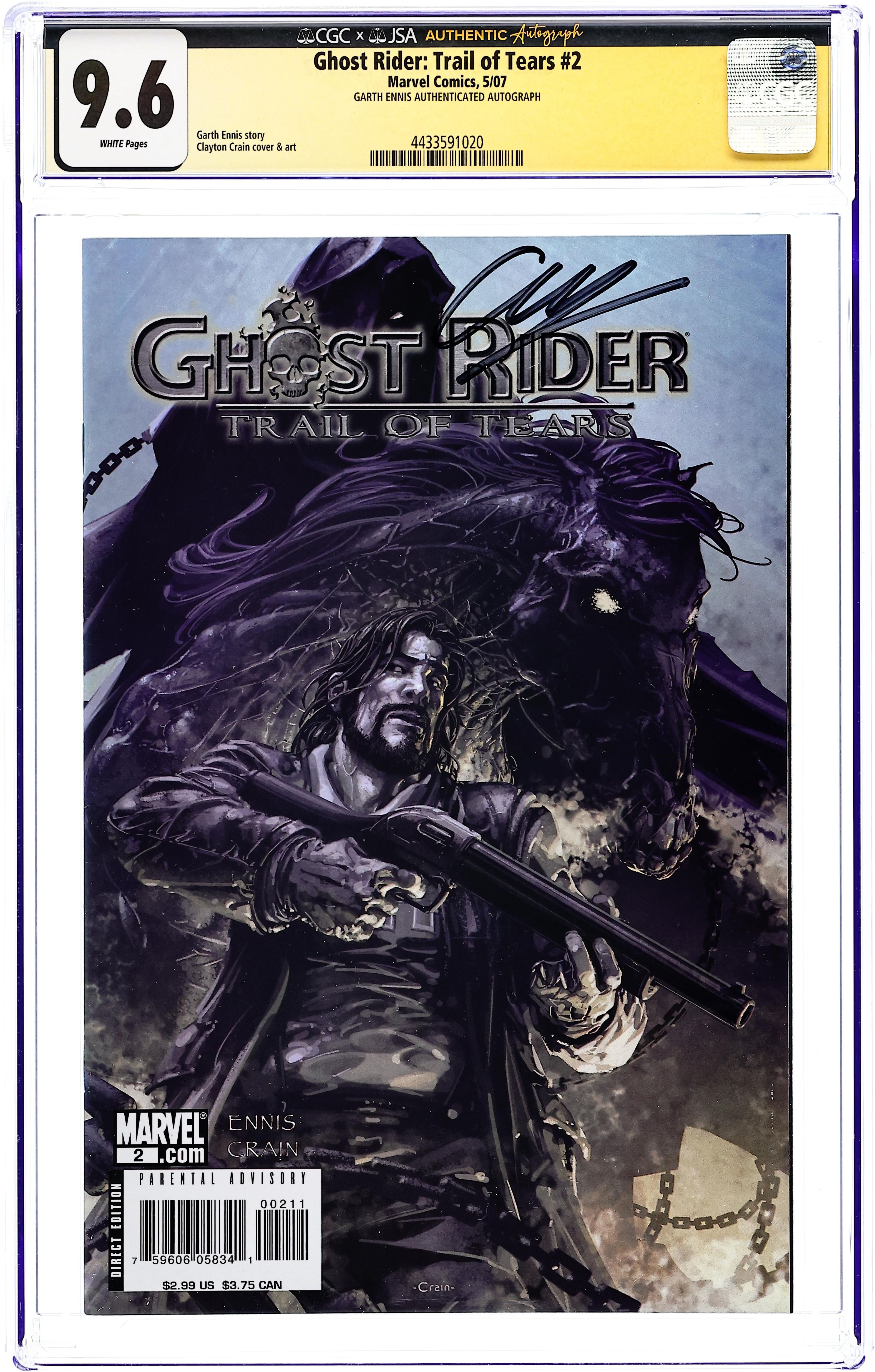 Written by GARTH ENNIS Pencils and Cover by CLAYTON CRAIN There has always been a Spirit of Vengeance. Before Johnny Blaze, before Danny Ketch, there was Travis Parham. As a lieutenant in the Confederate Army, Parham thought he'd gotten a full view of the darkness in men's souls. He was wrong. Someone did something terrible to his friend Caleb, and Parham's ready to ride through hell to find out who did it. Which is a good thing -- 'cause he's gonna have to. Up from the depths comes a force of nature that transcends his wildest dreams -- a fiery wraith that knows a thing or two about evil, and even more about vengeance. 32 PGS./Parental Advisory Cover price $2.99.