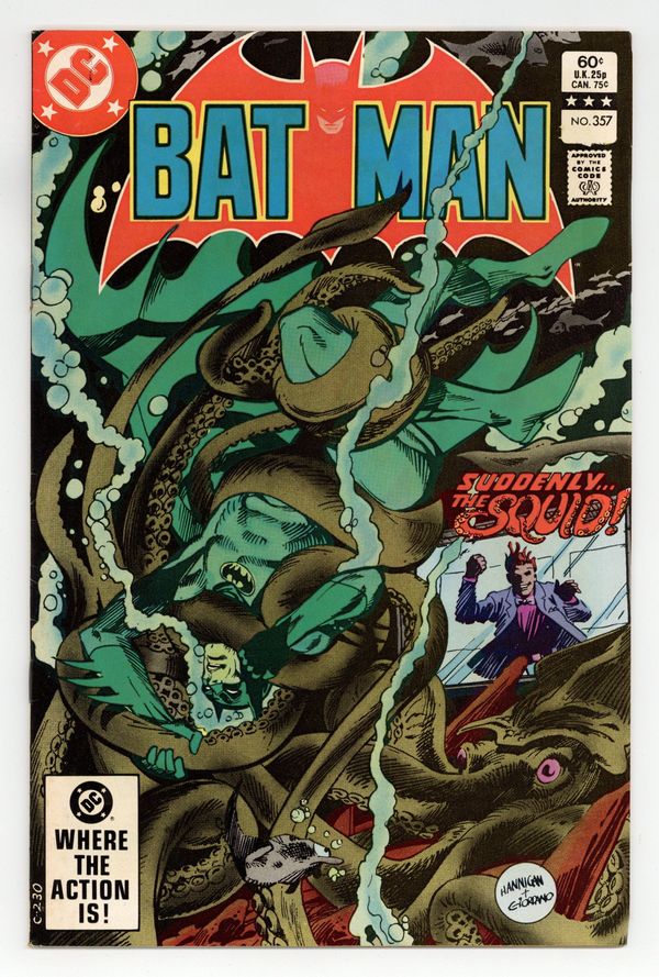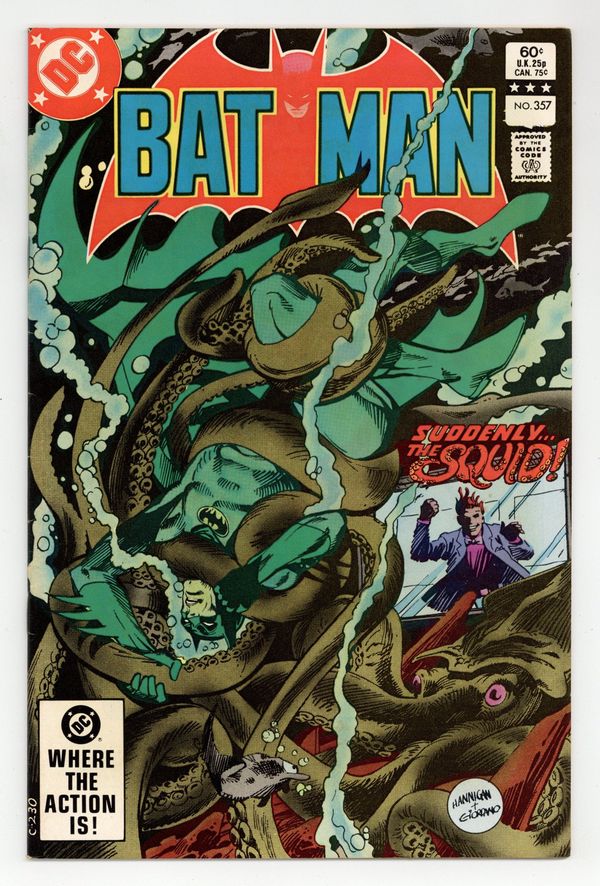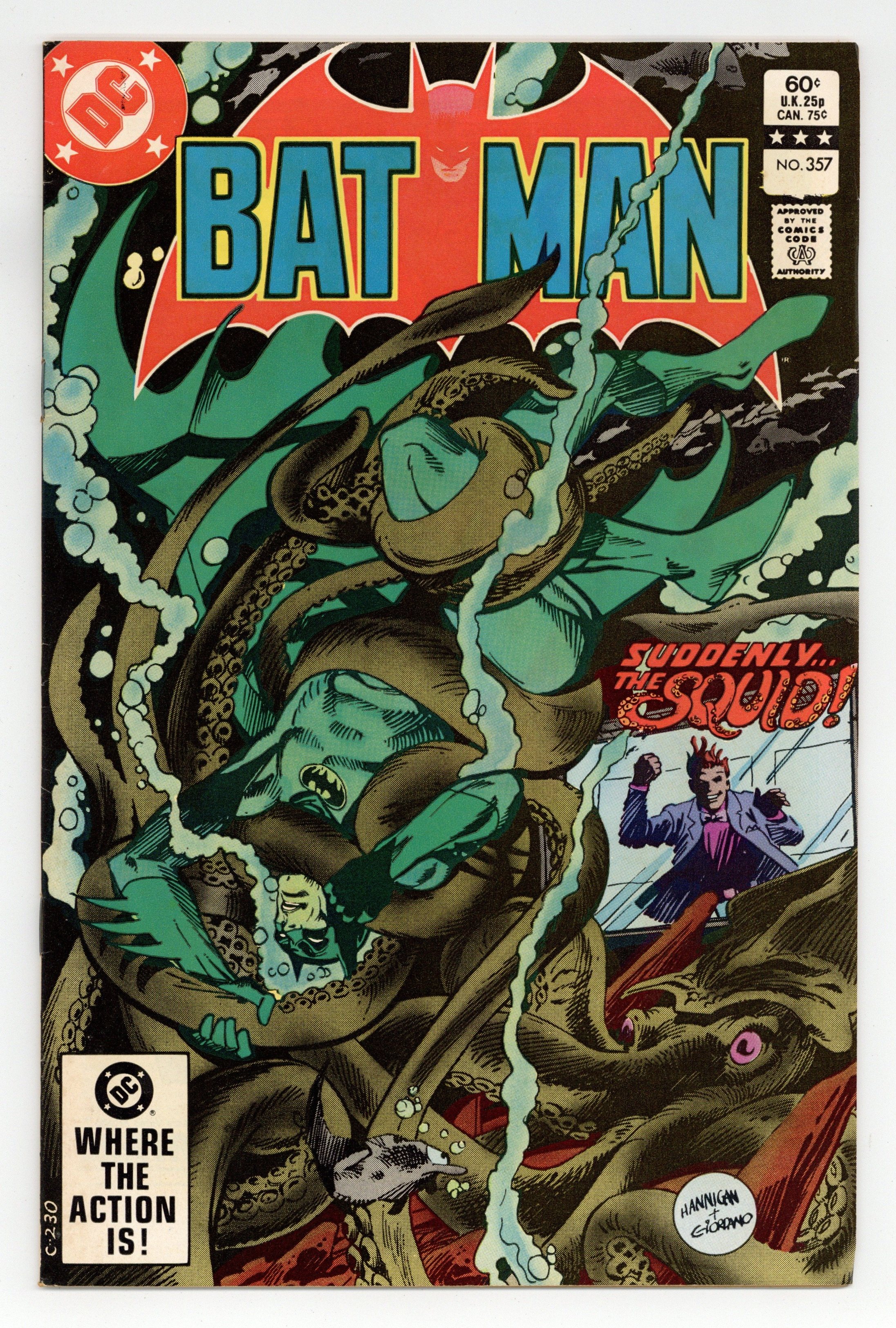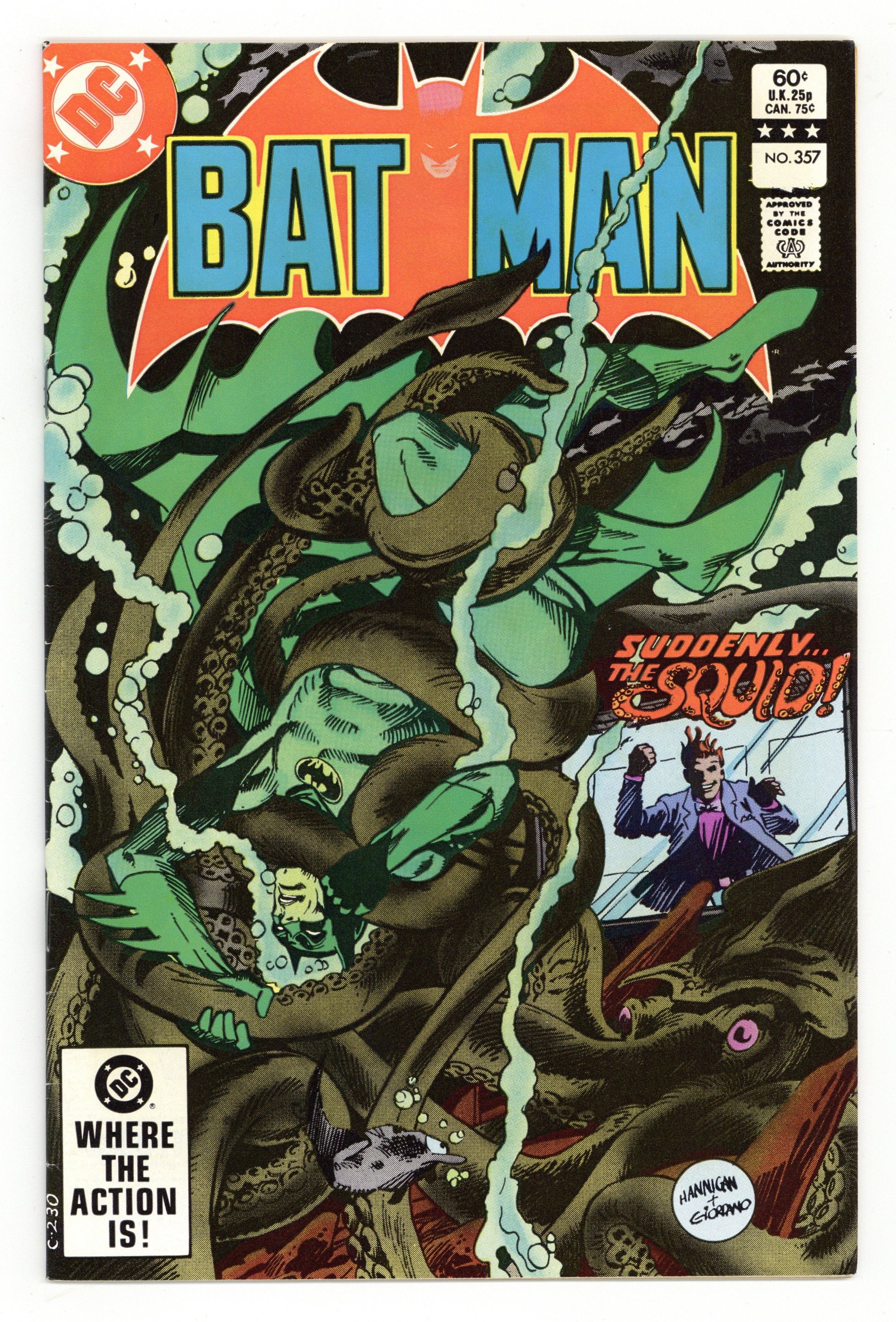 Tags: Batman$60.002nd printing - No month printed on cover (sold in 3-pack with World's Finest #289 and DC Comics Presents #55). Cover art by Ed Hannigan and Dick Giordano. Squid starring Batman, Dick Grayson, Commissioner Gordon, Hamilton Hill, Joey Taylor, Waldo Flynn, Olivia Ortega, and the Squid (intro), script by Gerry Conway, pencils by Don Newton, inks by Alfredo Alcala; Batman battles the Squid. Letter to the editor from comics editor/writer Kevin Dooley. 40 Pages, Full Color. Cover price $0.60.