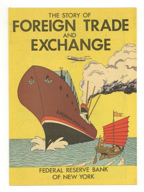 Published 1985 by Federal Reserve Bank.$2.501985 Edition (1st). The Story of Foreign Trade and Exchange is a promotional comic distributed by the Federal Reserve Bank. Learn how foreign trade works and how it promotes a healthy world economy. Art by Al Wenzel. Full color, 24 pages, 7.25-in. x 9.75-in., all newsprint, no cover price.