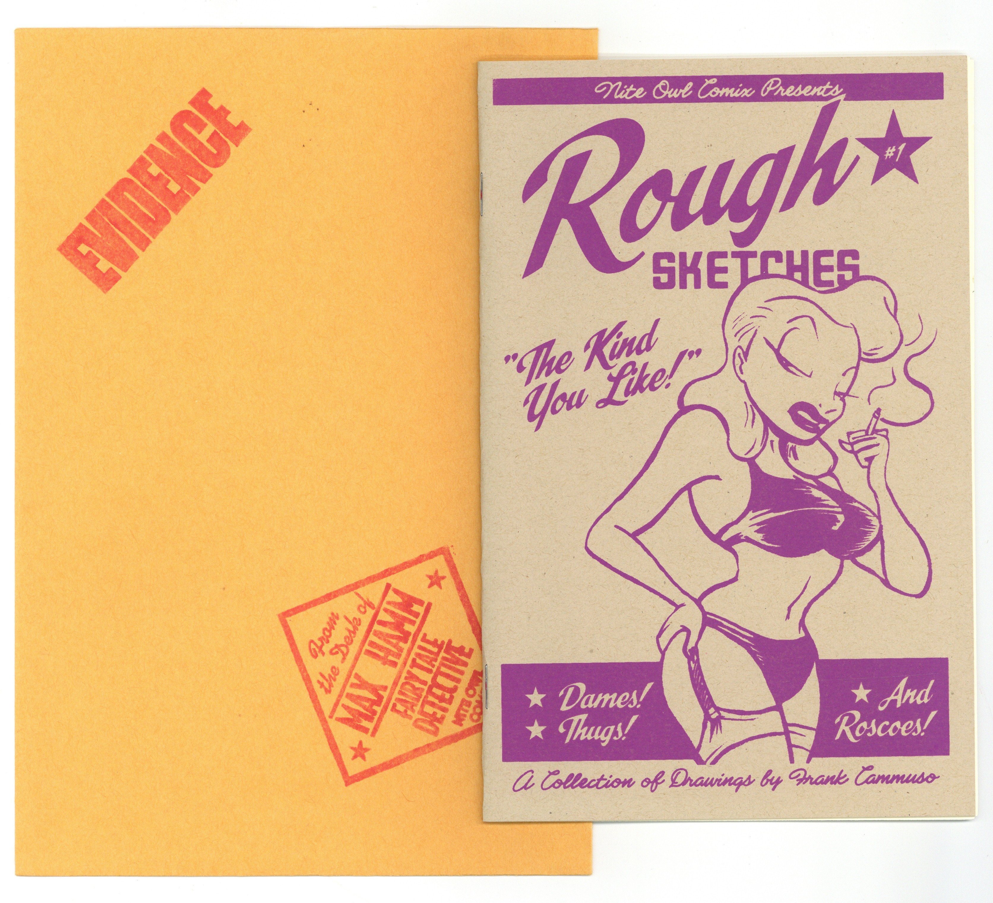 Signed and limited to 150 copies. Includes 6 page reprint of first Max Hamm Fairytale Detective story from Expo 2001 entitled "Just Right." 14 pages of sketches. Comes with envelope stamped "EVIDENCE" and "From the Desk of Max Hamm Fairy Tale Detective". 20 pages total, 8.5" X 5.5", black and white. Cover price $10.00.