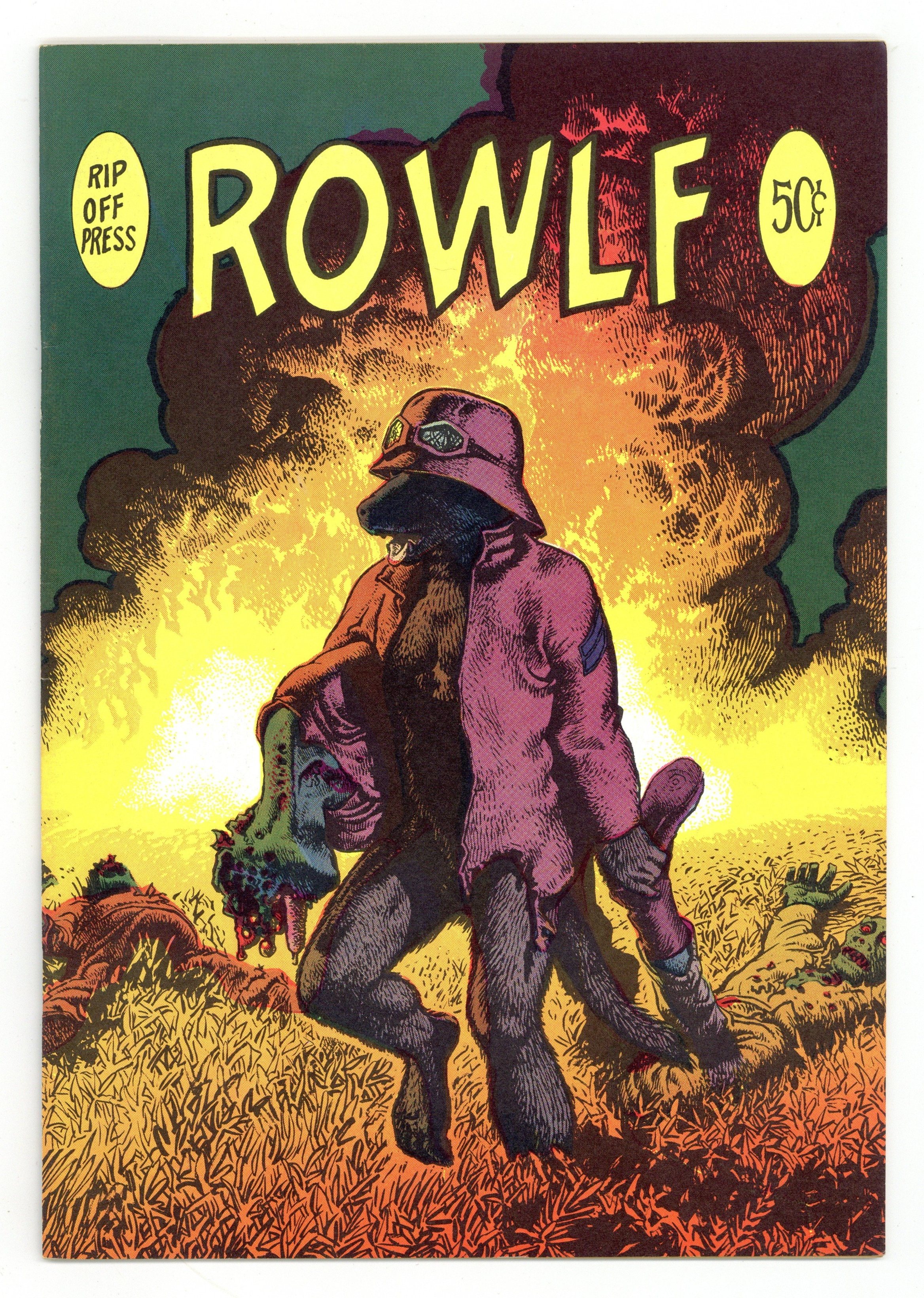 Published Jan 1971 by Rip Off Press.$25.00Second printing. By Richard V. Corben. The story of Rowlf was first published in Voice of Comicdom over the course of two issues (#16 and #17) in 1970-71 but gained a much wider audience with this Rip Off Press publication. 6 1/2-in. x 10-in., 32 pages, B/W. Cover price $0.50.