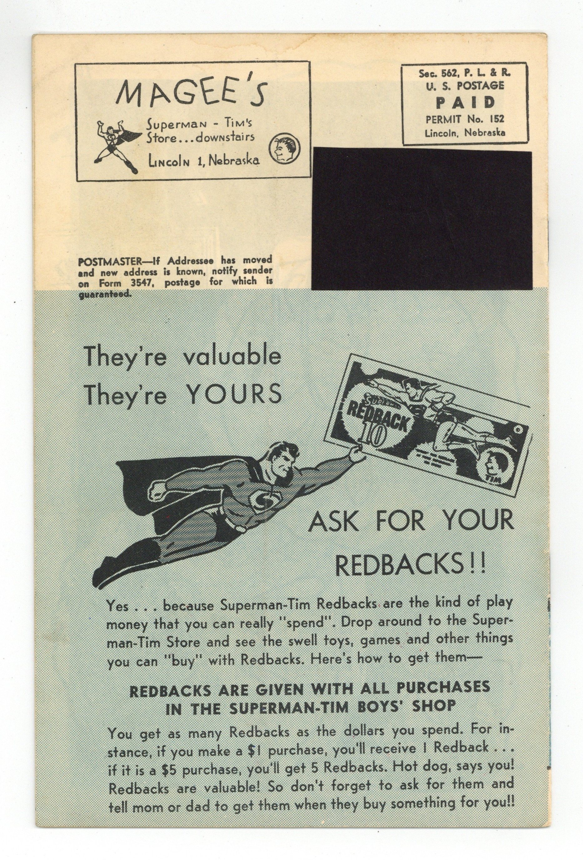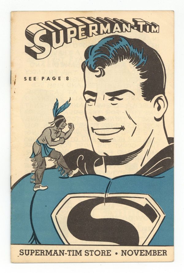 Tags: SupermanPublished Nov 1948 by Tim's Official Store.$100.00- Monthly stamp pasted in interior. Interior activity completed. Water damage.