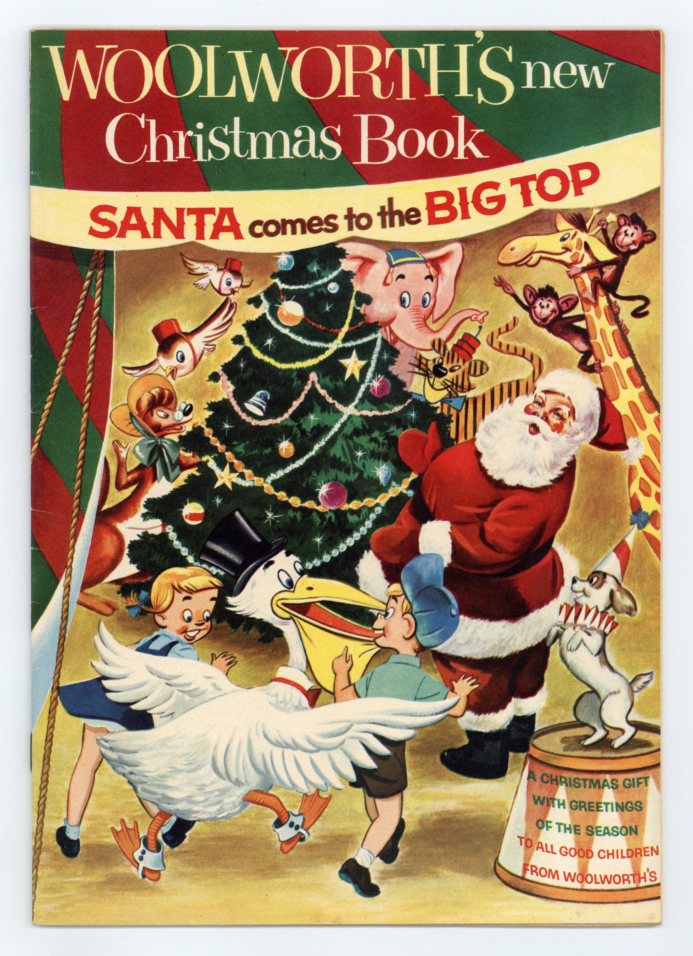 Published 1954 by F.W. Woolsworth Co..$65.00Woolworth's new Christmas Book, Santa Comes to the Big Top (1954) is a promotional comic book published by F.W. Woolsworth Co.. "Santa Comes to the Big Top" features a Christmas tale, games, activities, and illustrated advertisments for products sold in the Woolsworth stores. Back cover has Christmas themed artwork with text box featuring the Woolsworth Lay-Away-Plan. 32 pages, full color, 7.25-in. x 10-in., with no cover price.
