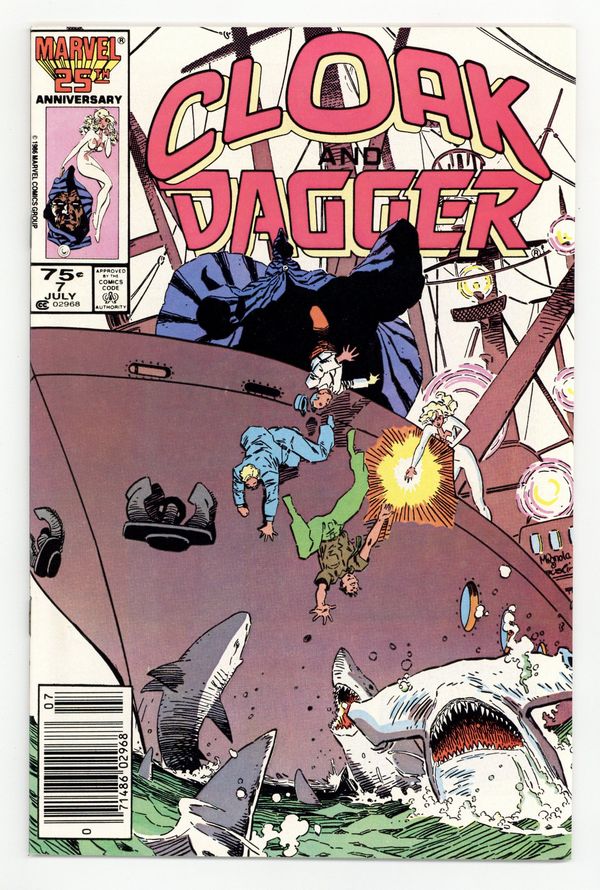 $18.75Mark Jeweler Advertisement Insert Variant. Cover pencils by Mike Mignola, inks by Terry Austin. Stowaways!, script by Bill Mantlo, pencils by Marc Silvestri, inks by Terry Austin; Cloak and Dagger stow away on the drug smugglers' ship which ends up at Marseille, France. The pair meet fellow stowaway, Bill Clayton, who joins them in their quest to end the drug ring. 36 pgs. $0.75. Cover price $0.65.