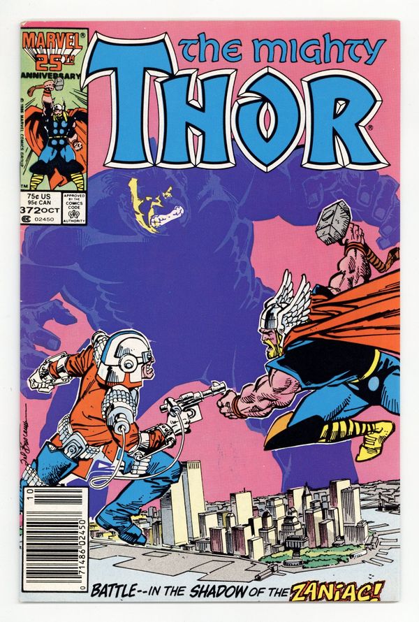 Tags: Mark Jeweler Edition, Thor$42.00Mark Jewelers Advertisement Insert Variant. Thor battles Judge Peace in "Without Justice There Is No Peace!" Script by Walt Simonson, pencils and cover by Sal Buscema, inks by Bret Blevins. Cameos by Beta Ray Bill, Sif, the Hulk, Balder, Hogun, Fandral, Volstagg, and Hela. Thor pin-up by Sal Buscema. Cover price $0.75.