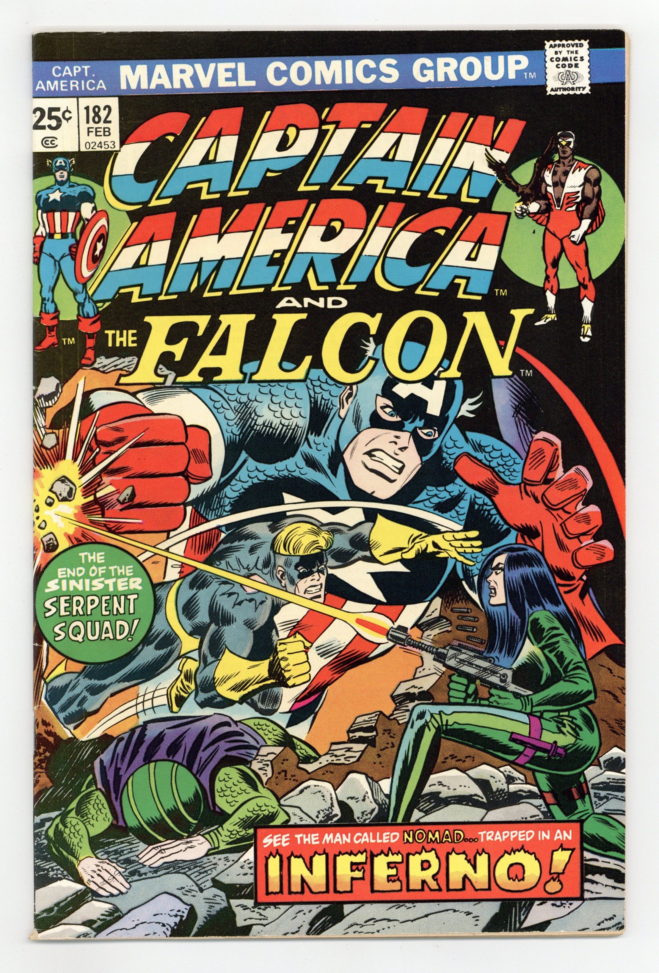 Mark Jewelers Advertisement Insert Variant. Roscoe continues as the new Captain America in "Inferno!" Script by Steve Englehart, pencils by Frank Robbins, inks by Joe Giella. Red Skull cameo. Letter to the editor from comics publisher Dean Mullaney. The letters page also contains Marvel Value Stamp series A #36 (Ancient One from Doctor Strange by Steve Ditko). Ron Wilson/Frank Giacoia cover. Cover price $0.25.