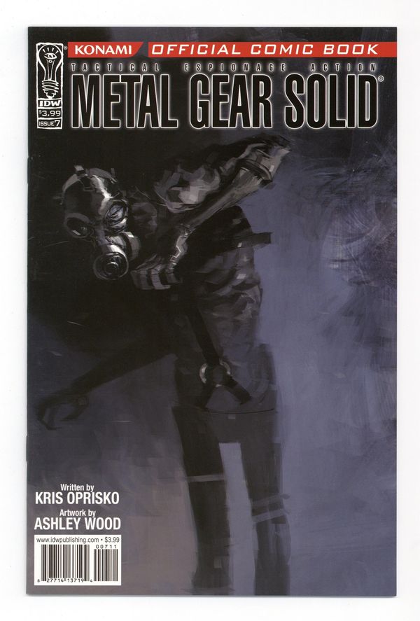 Published Mar 2005 by IDW Publishing.$7.00by Kris Oprisko & Ashley Wood Solid Snake versus Liquid Snake. The Ninja versus Vulcan Raven. Master Miller versus Psycho Mantis. Otacon versus Sniper Wolf. Meryl versus... herself? The world goes topsy-turvy in this battle royale issue of Metal Gear Solid. Based on the smash-hit Konami video game series. 7x10, 32pgs, FC SRP: $3.99 Cover price $3.99.