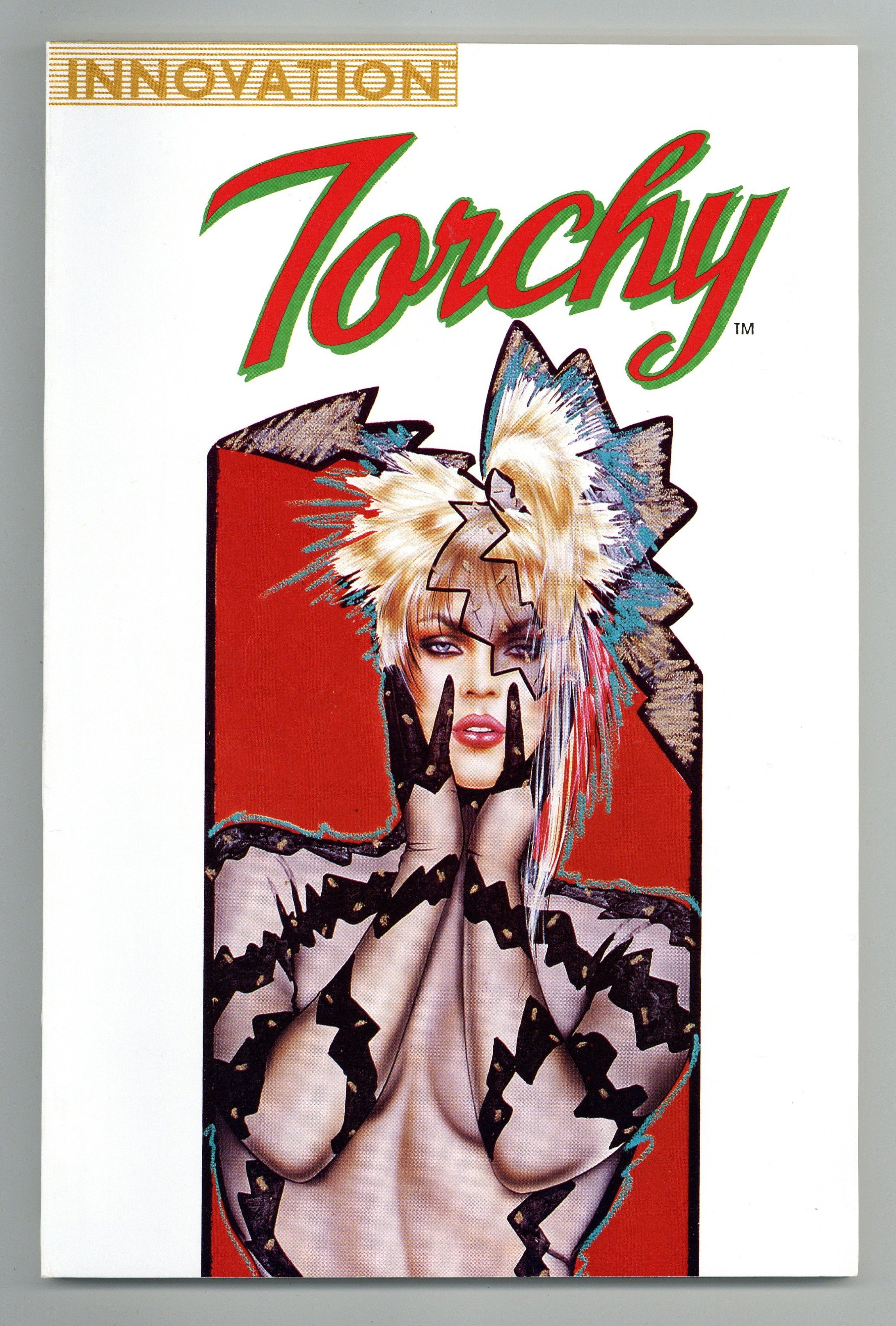 Published Jan 1992 by Innovation.$25.001st printing. Collects Torchy (1991 Innovation) #1-4. Art by Bill Ward. Cover by Olivia De Berardinis. Featuring Torchy Golden Age rreprints with good girl artist Bill Ward at the height of his career. Plenty of curvy dames, wild action and humor! Softcover, 96 pages, B&W. Cover price $6.95.