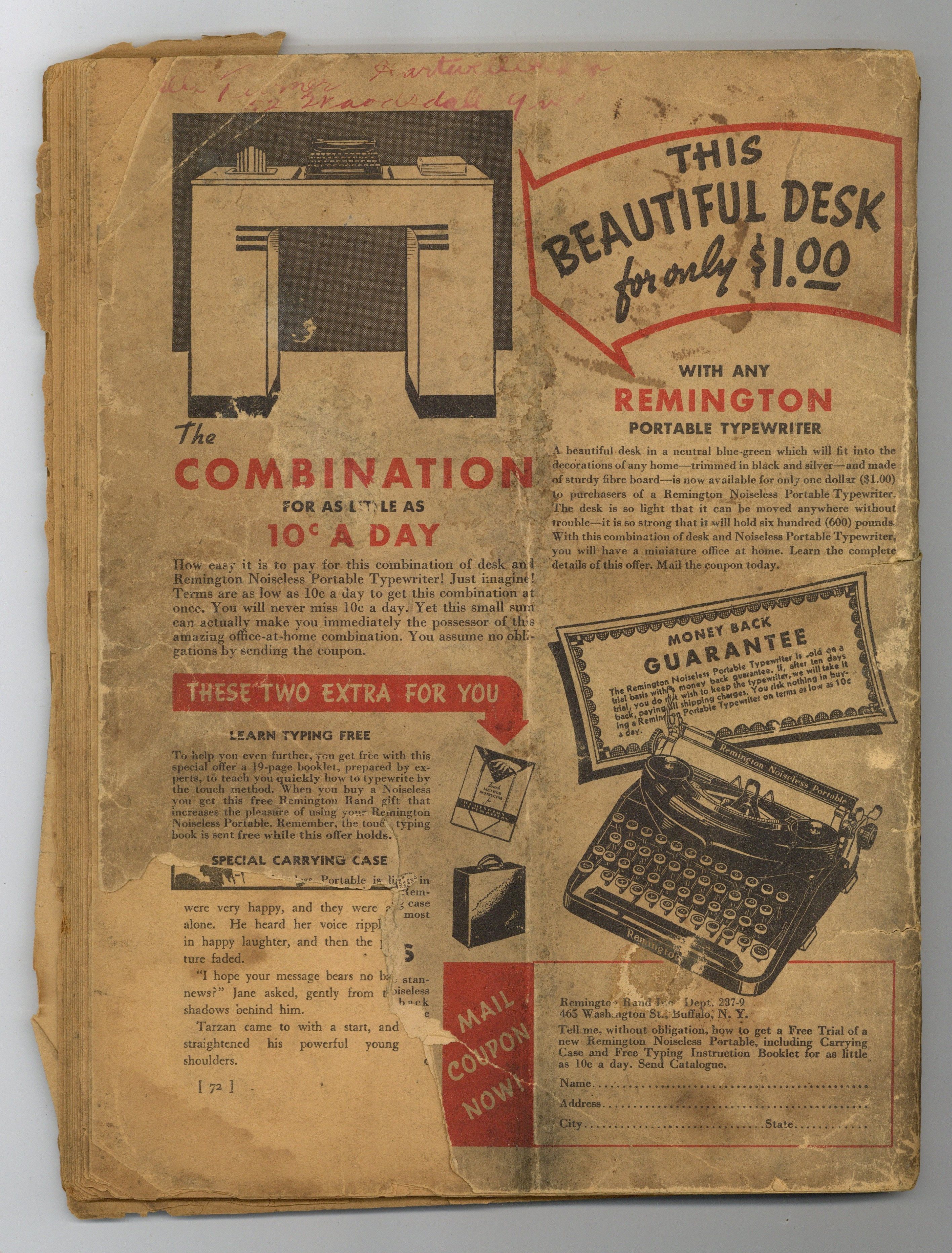 $77.00- INCOMPLETE. Piece missing, interrupts art or story. Severe interior tearing. Brittle. Missing pieces of front and back cover.