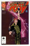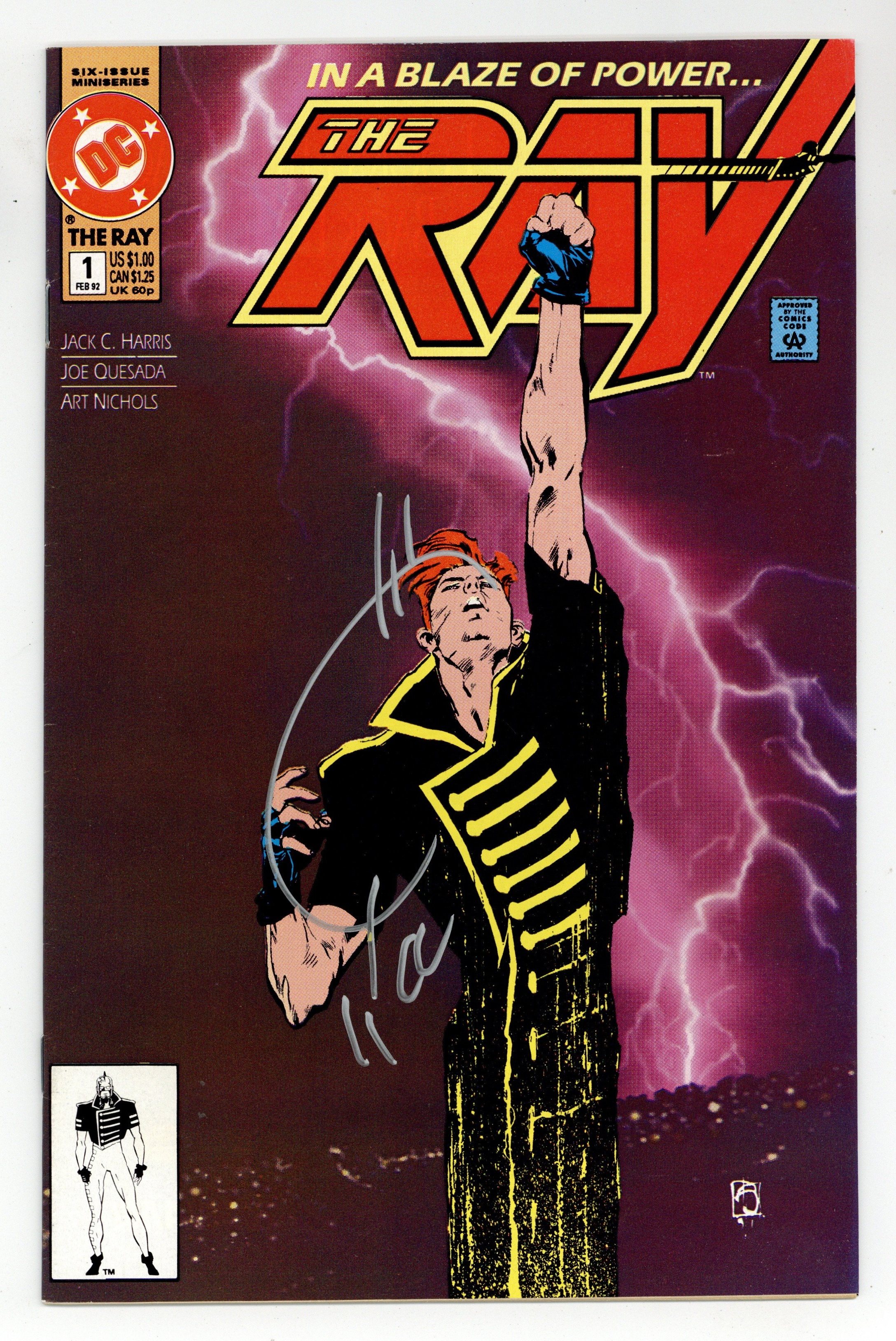 Direct Edition. Ray Terrill grew up believing he couldn't tolerate exposure to sunlight. Imagine his shock when he learns that's not his problem. The truth, revealed to him at his father's deathbed, is that Ray Terrill is the son of the Ray, a Golden Age super-hero, and he possesses the same light-based super-powers as his father! THE RAY introduces this second generation super-hero, including the intricate back-story of this unusual and naive 18-year old's life as he comes of age and faces the awesome responsibilities of his life! Written by Jack C. Harris, with art by Joe Quesada and Art Nichols. Cover by Mark Beachum. Cover price $1.00.