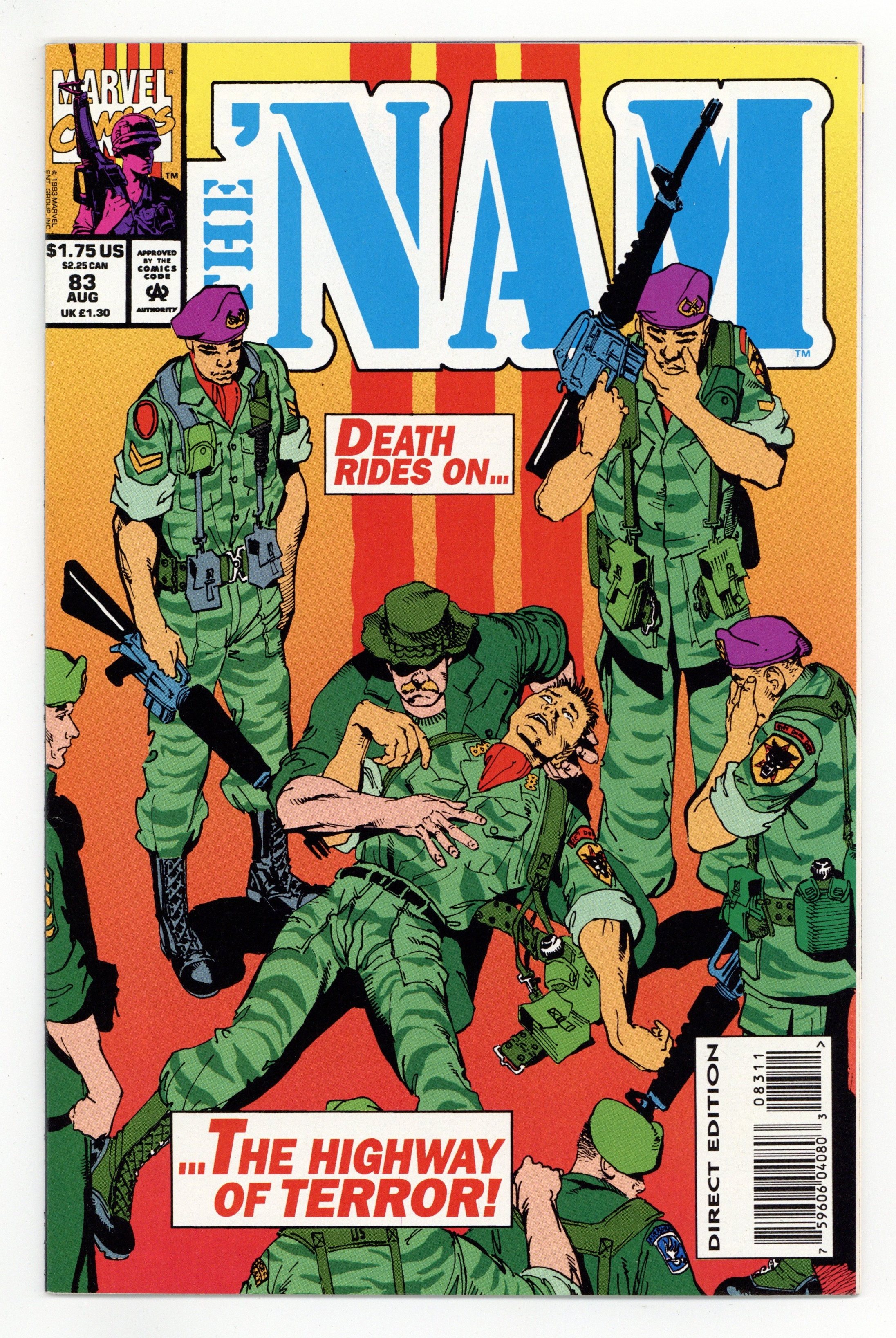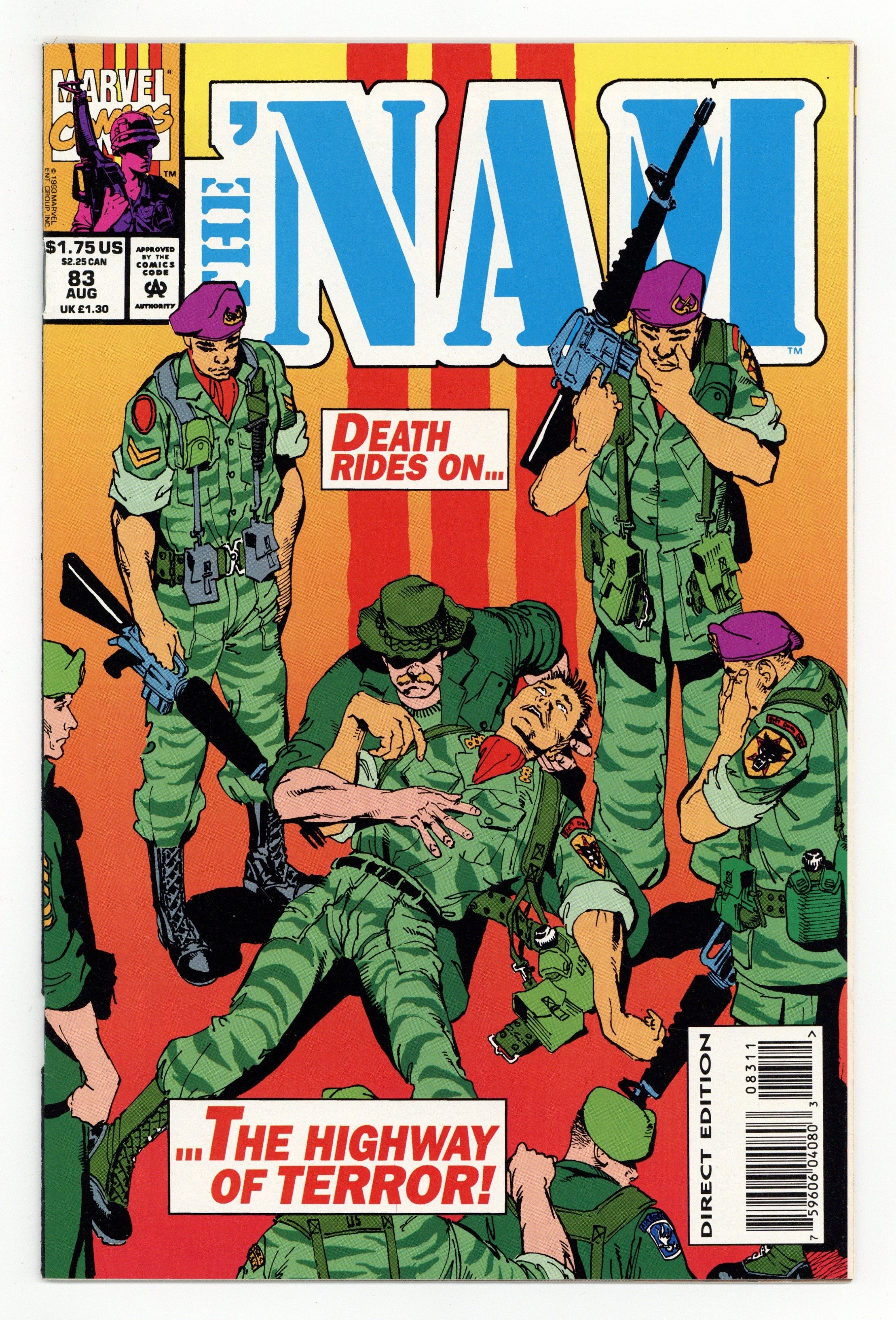 Don't miss the dramatic conclusion to the HUE Battle as our troops break ranks and one of them meets his ultimate fate. Also included is a 10-page "Stateside" conclusion to the Rob Little saga. Written by Don Lomax, with art by Wayne Vansant, and Mike Harris & Don Lomax. Cover price $1.75.