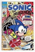 Published Jan 1994 by Archie Publications.$33.00Cover pencils by Dave Manak, inks by Henry Scarpelli. The Spin Doctor, script by Michael Gallagher, pencils by Dave Manak, inks by Henry Scarpelli; Sonic invades Dr. Robotnik's volcano fortress to stop his latest scheme. Here Comes The Bribe, pencils by Manak, inks by Scarpelli. Sonic's Christmas Carol, script by Angelo DeCesare, pencils by Manak, inks by Henry Scarpelli; A retelling of the Dickens classic, Sonic style. Inspired by the Sega Genesis videogame. 36 pgs. $1.25. Cover price $1.25.