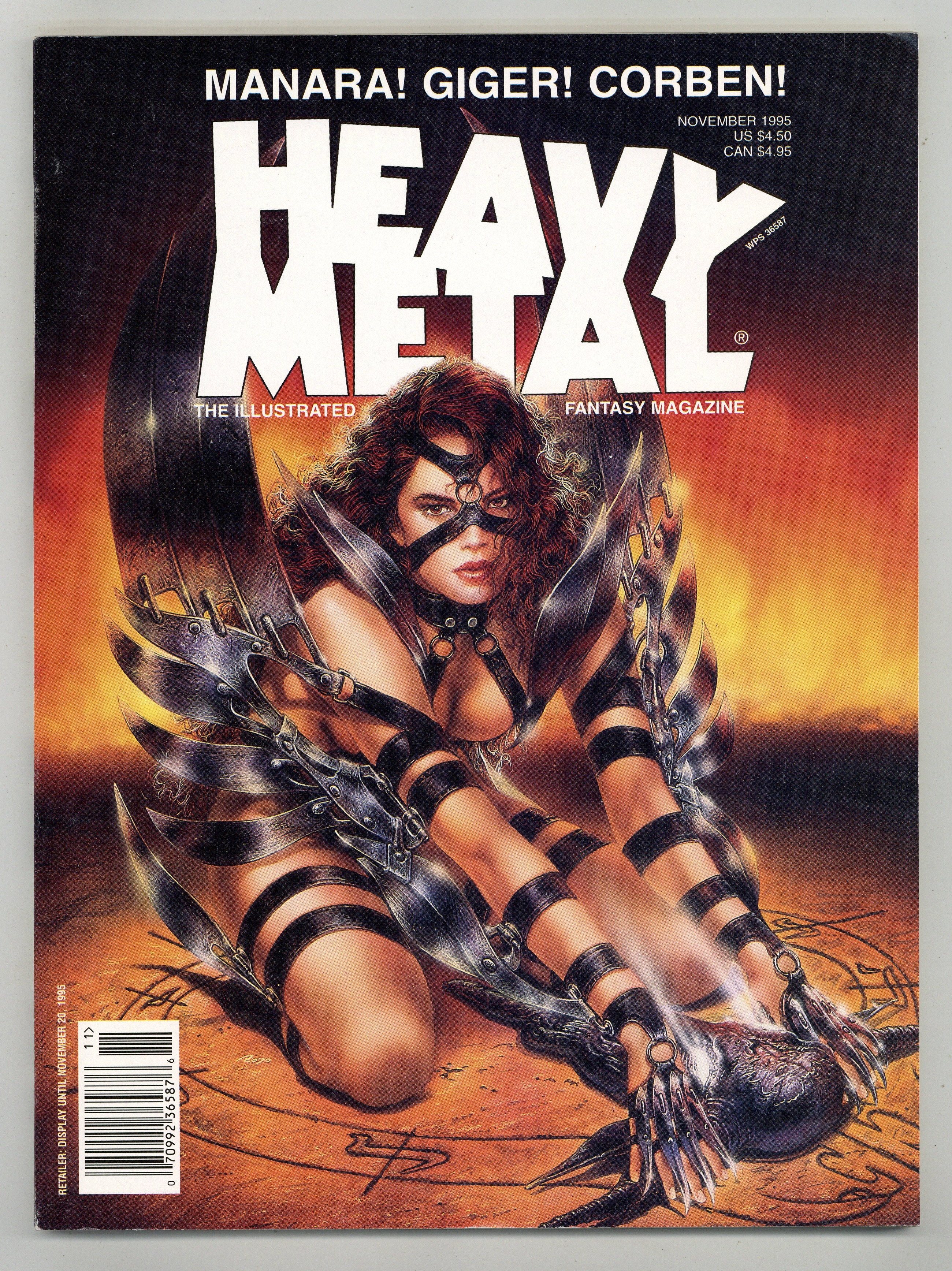 The adult illustrated fantasy magazine. Cover art by Luis Royo. H. R. Giger gallery. The Great Undart, script and art by Alfonso Azpiri. River of Fire: Deep South Story starring Black Deker, script and art by Fernando de Felipe. Ringside, script and art by Manuel Peirotti [as Peiró]. The Way of the Warrior, script and art by François Boucq. The Heroes of the Stars, script and art by Stanislas Manoukian and Vincent Roucher. Machonismechs, script and art by Jon Beeston. Marie Claire, script and art by Milo Manara. Bit Degeneration, script and art by Bruno Brindisi. Bull Digger, script and art by Richard Corben. River of Fire: Deep South Story starring Black Deker, script and art by Fernando de Felipe. Nov, 1995, issue 160. Cover price $4.50.