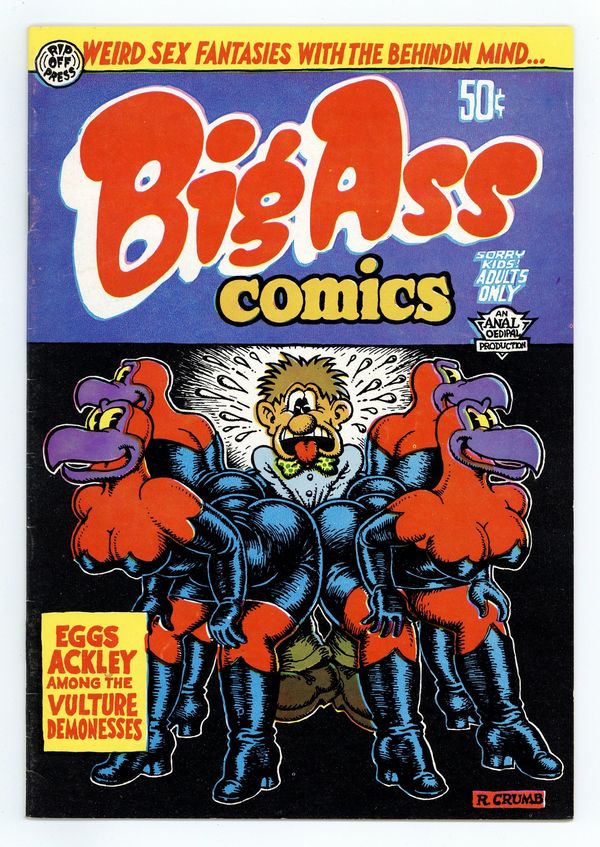 Published 1969 by Rip Off Press/Last Gasp.$30.005th Printing. Story Art and Cover by Robert Crumb. Feature story is Eggs Ackley Among the Vulture Demonesses, plus Dale Steinberger: The Jewish Cowgirl, All Meat Comics, Mrs. Quiver, Artsy Fartsy. 7-in. x 10-in., 24 pages, B&W. MATURE READERS. NOTE: 5th Printing, green pants, brown shoes with GLOSSY cover, Page order changed to Ms. Quiver Last Page Cover price $0.50.