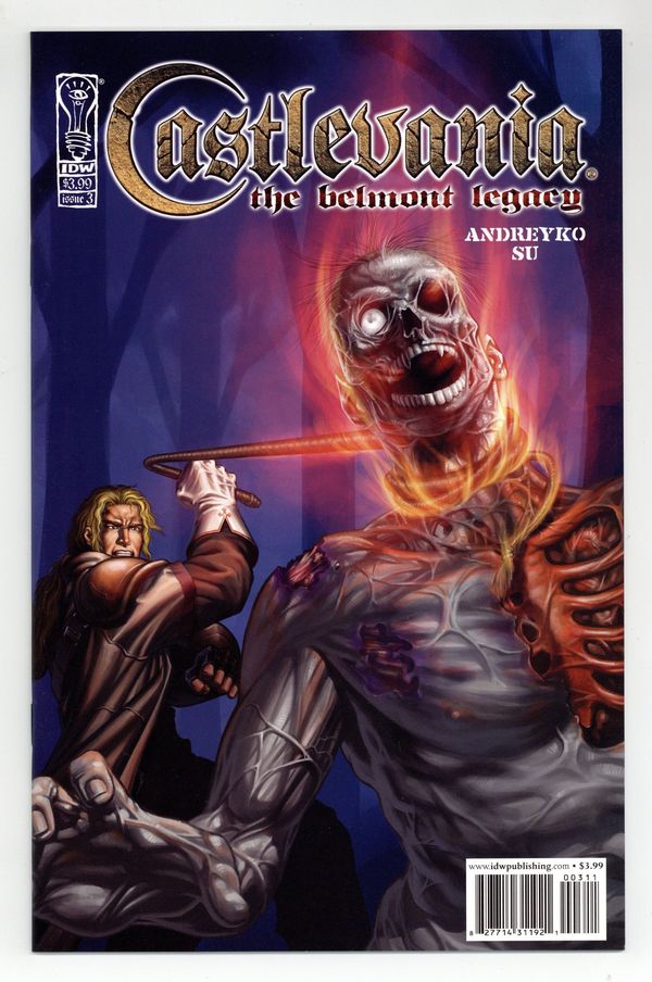 Published May 2005 by IDW Publishing.$18.75Marc Andreyko (w); E.J. Su (a) Dracula, newly risen from the grave, has spirited away the new bride of Christopher Belmont. Christopher and his companions desperately attempt to reach her before Dracula can kill or turn her, but they'll have to fight their way through a legion of vampiric zombies to do it! Based on the wildly popular Konami videogame. $3.99 FC 32 pages Cover price $3.99.
