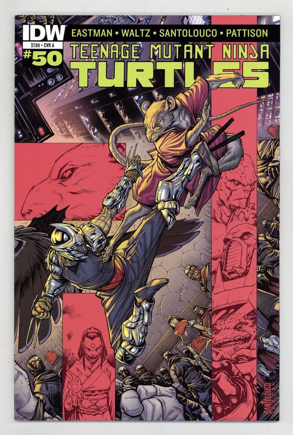 Published Sep 2015 by IDW Publishing.$36.00Written by Tom Waltz and Kevin Eastman. Art and Cover by Mateus Santolouco. The epic conclusion to over four-years worth of storylines! The Turtles stand against Shredder for one final battle that will determine the fate of NYC, and the world, for years to come! Cover price $7.99.